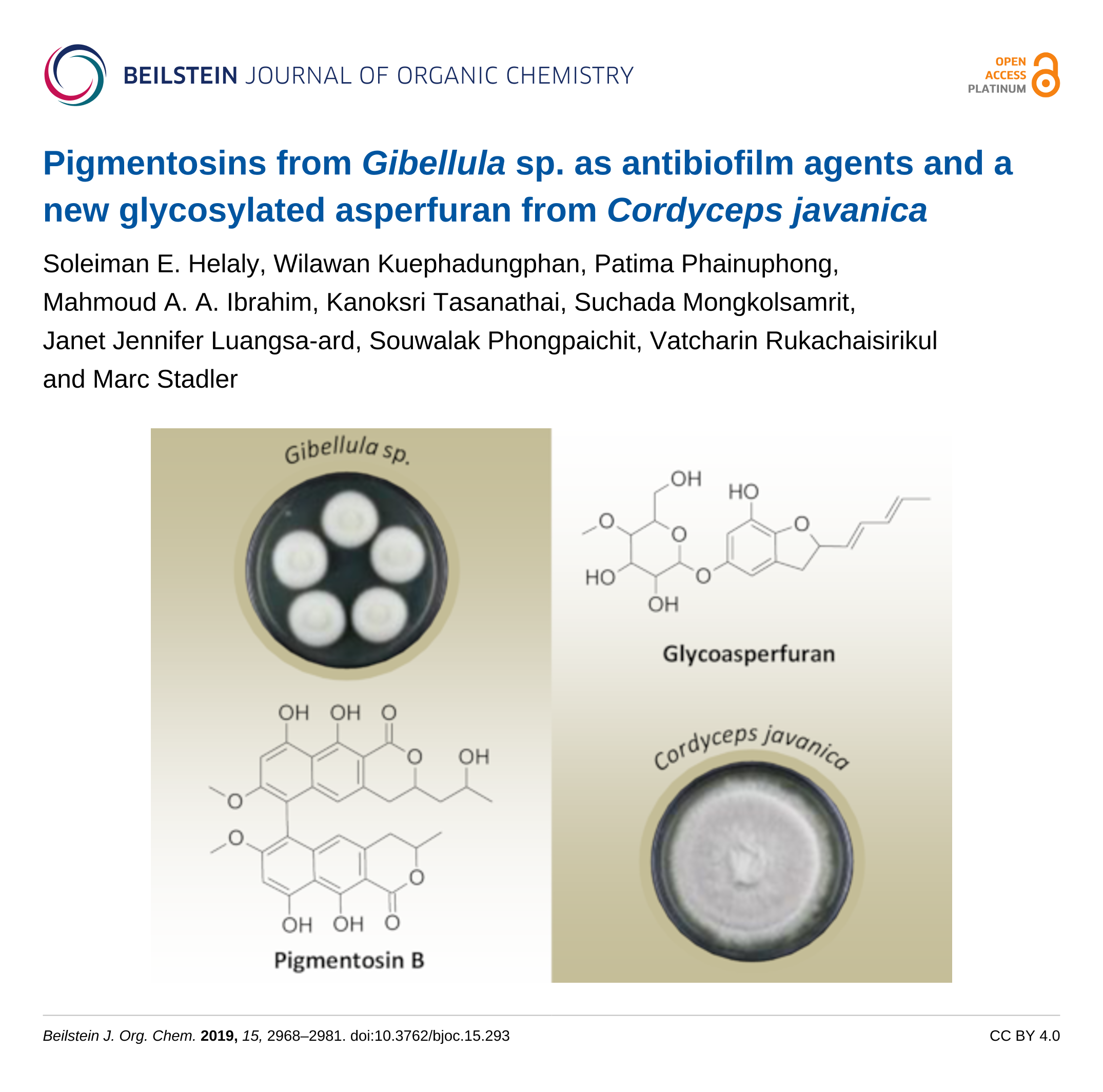 Soleiman E. Helaly, Wilawan Kuephadungphan, Patima Phainuphong, Mahmoud A. A. Ibrahim, Kanoksri Tasanathai, Suchada Mongkolsamrit, Janet Jennifer Luangsa-ard, Souwalak Phongpaichit, Vatcharin Rukachaisirikul and Marc Stadler
