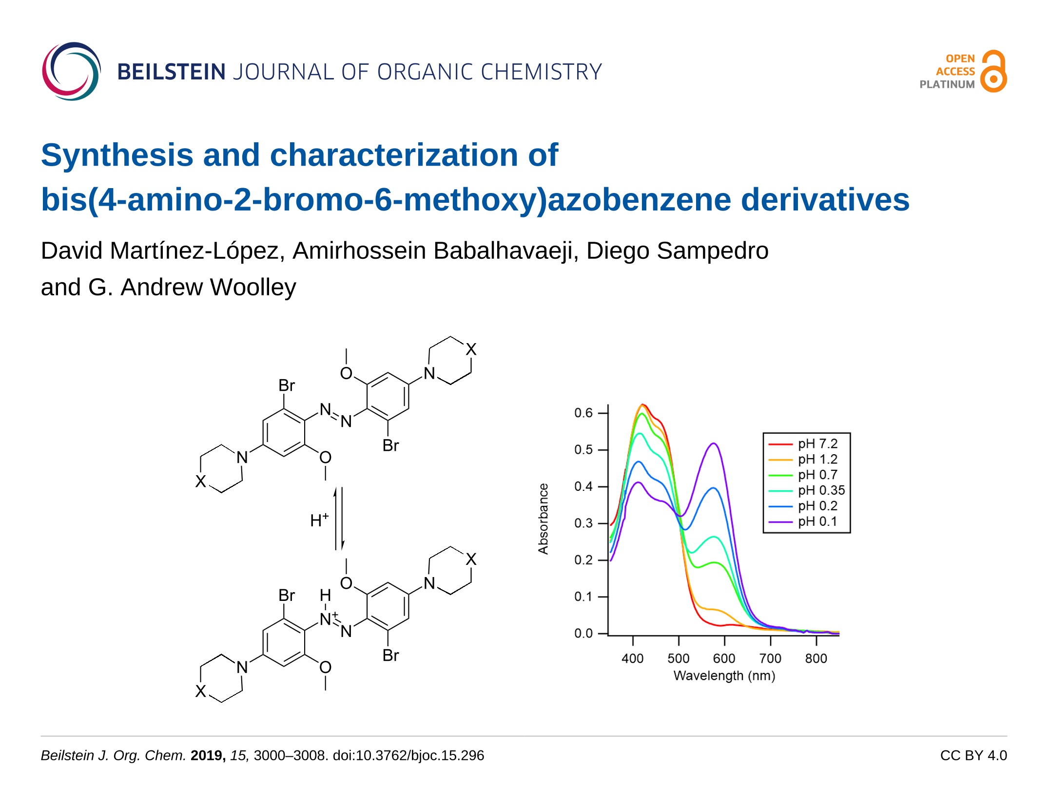 Martínez-López, D.; Babalhavaeji, A.; Sampedro, D.; Woolley, G. A. Beilstein J. Org. Chem. 2019, 15, 3000–3008. doi:10.3762/bjoc.15.296