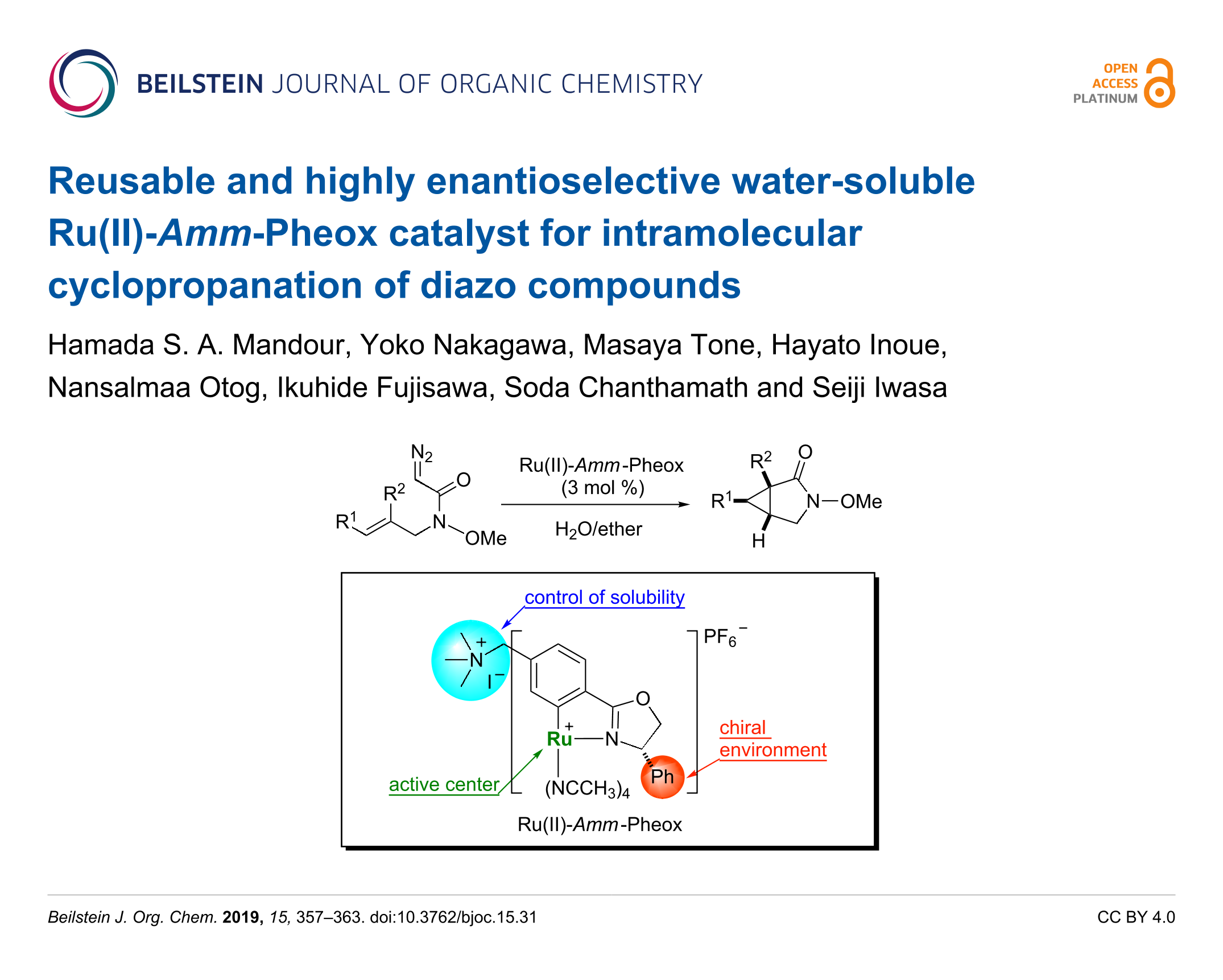 Mandour, H. S. A.; Nakagawa, Y.; Tone, M.; Inoue, H.; Otog, N.; Fujisawa, I.; Chanthamath, S.; Iwasa, S. Beilstein J. Org. Chem. 2019, 15, 357–363. doi:10.3762/bjoc.15.31
