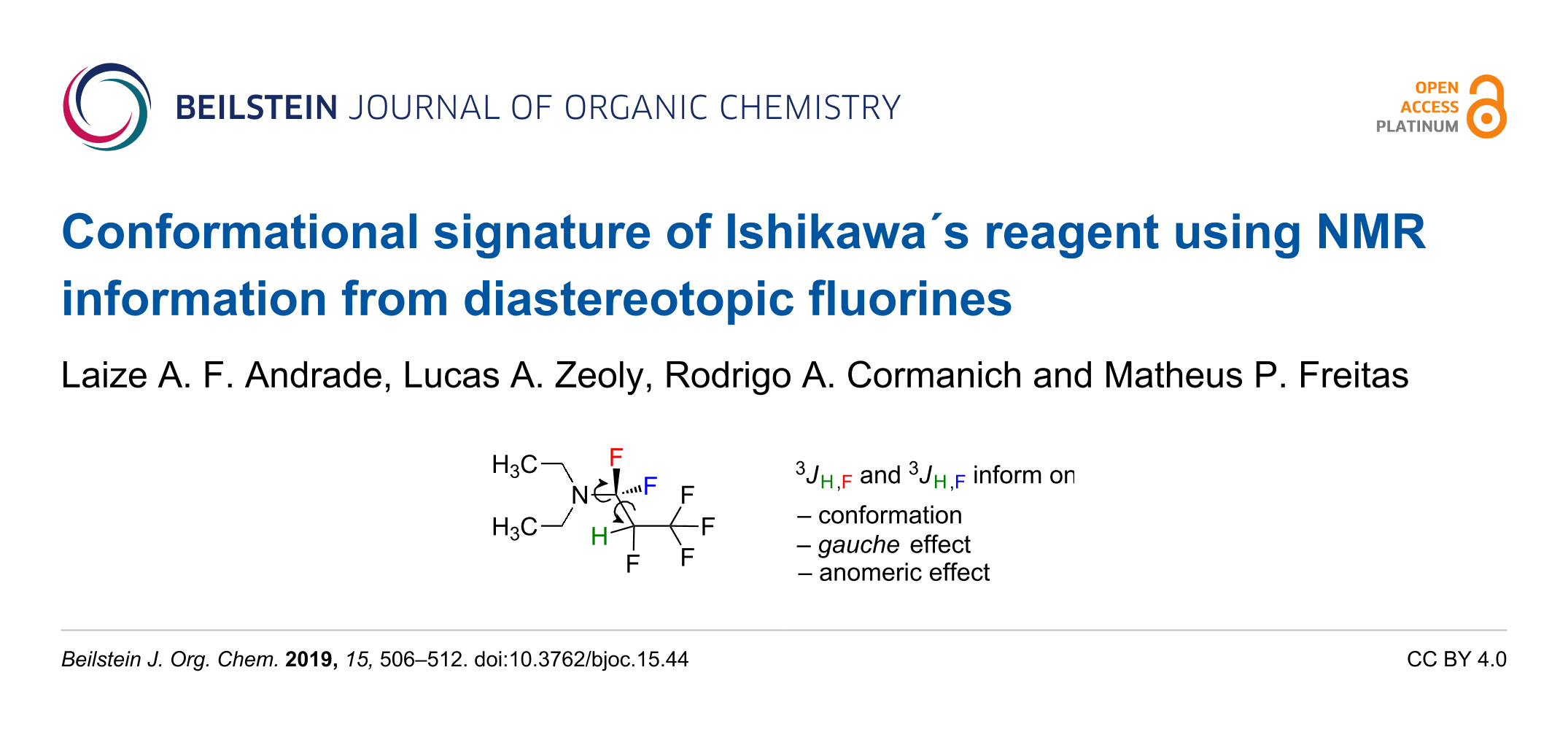 Andrade, L. A. F.; Zeoly, L. A.; Cormanich, R. A.; Freitas, M. P. Beilstein J. Org. Chem. 2019, 15, 506–512. doi:10.3762/bjoc.15.44