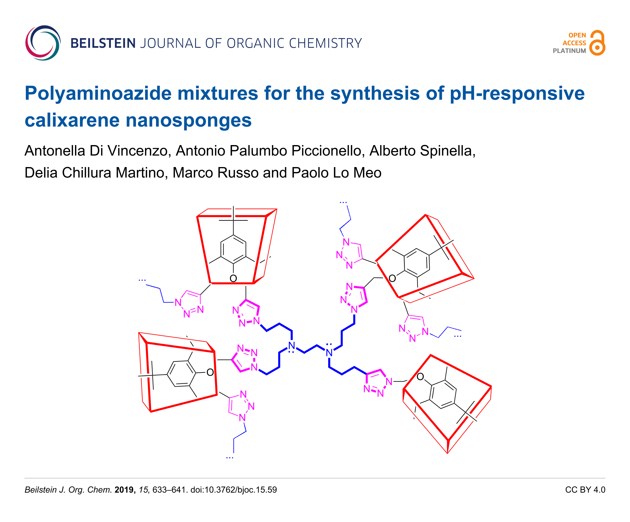 - Di Vincenzo, A.; Russo, M.; Cataldo, S.; Milea, D.; Pettignano, A.; Meo, P. L. Effect of pH Variations on the Properties of Cyclodextrin-Calixarene Nanosponges. ChemistrySelect 2019, 4, 6155–6161. doi:10.1002/slct.201901200
