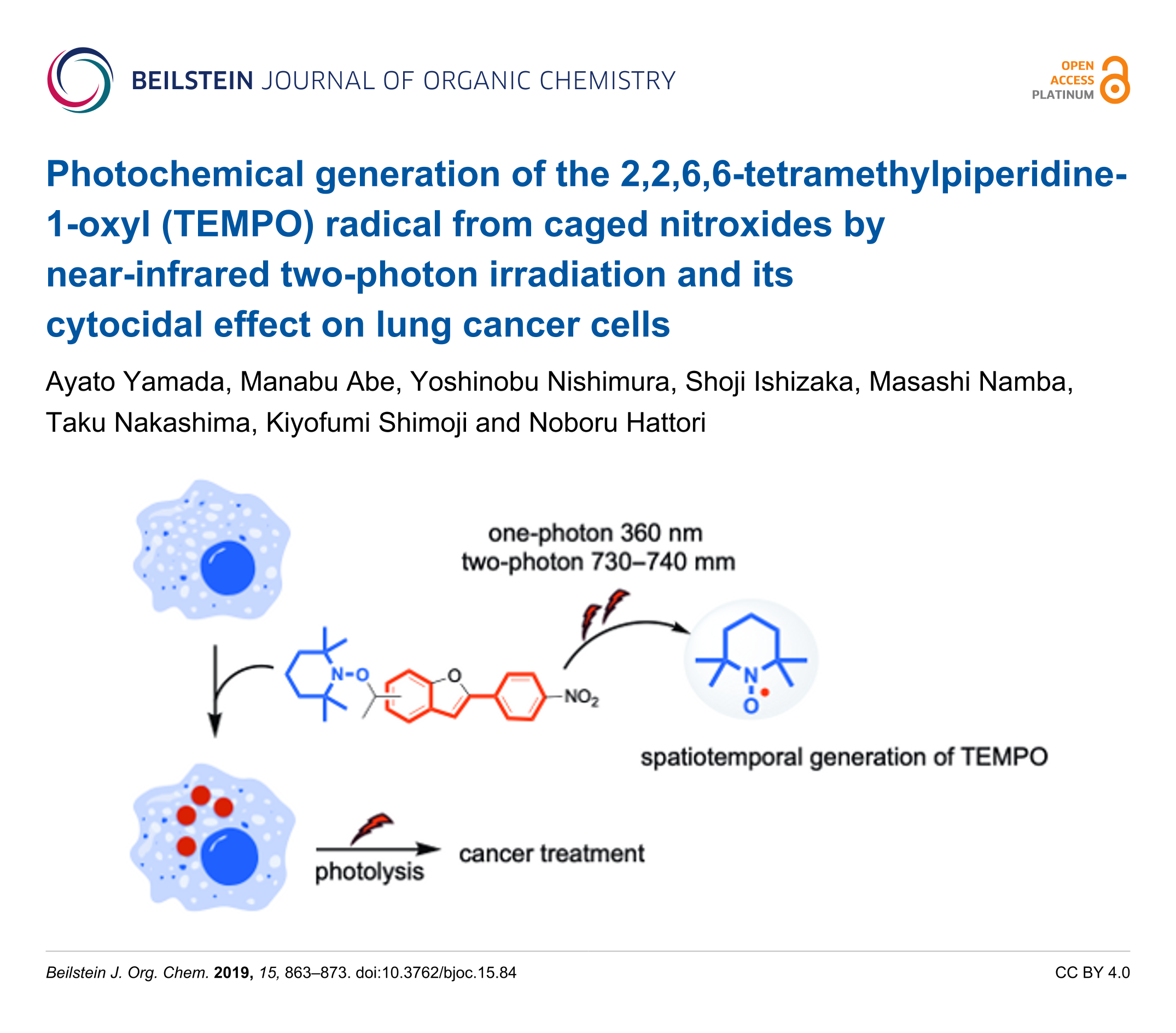 Photochemical generation of the 2,2,6,6-tetramethylpiperidine-1-oxyl (TEMPO) radical from caged nitroxides by near-infrared two-photon irradiation and its cytocidal effect on lung cancer cells