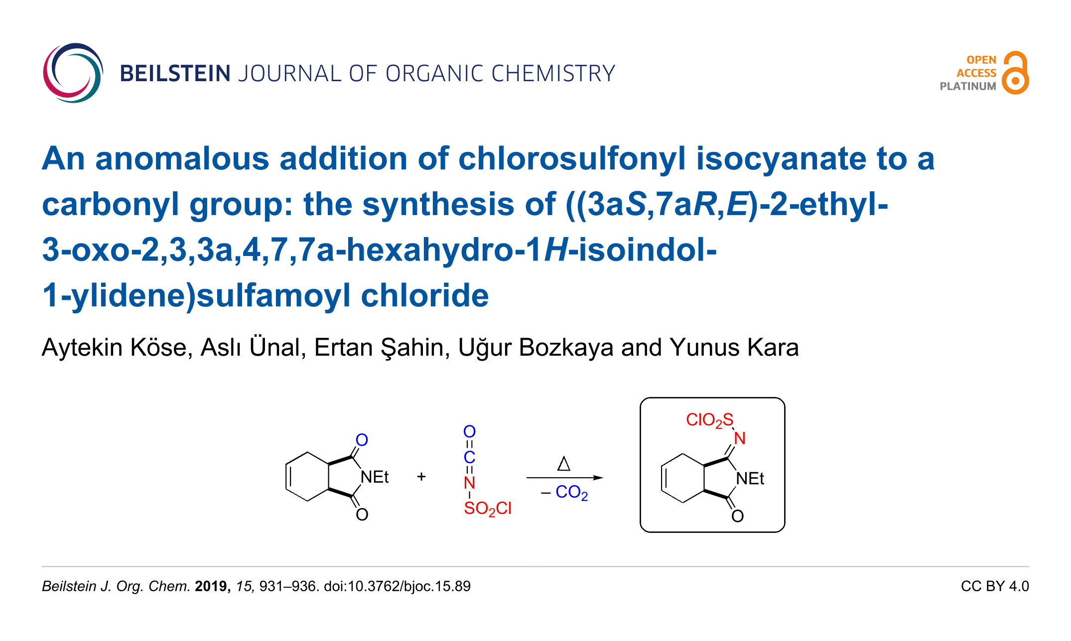 Köse, A.; Ünal, A.; Şahin, E.; Bozkaya, U.; Kara, Y. Beilstein J. Org. Chem. 2019, 15, 931–936. doi:10.3762/bjoc.15.89