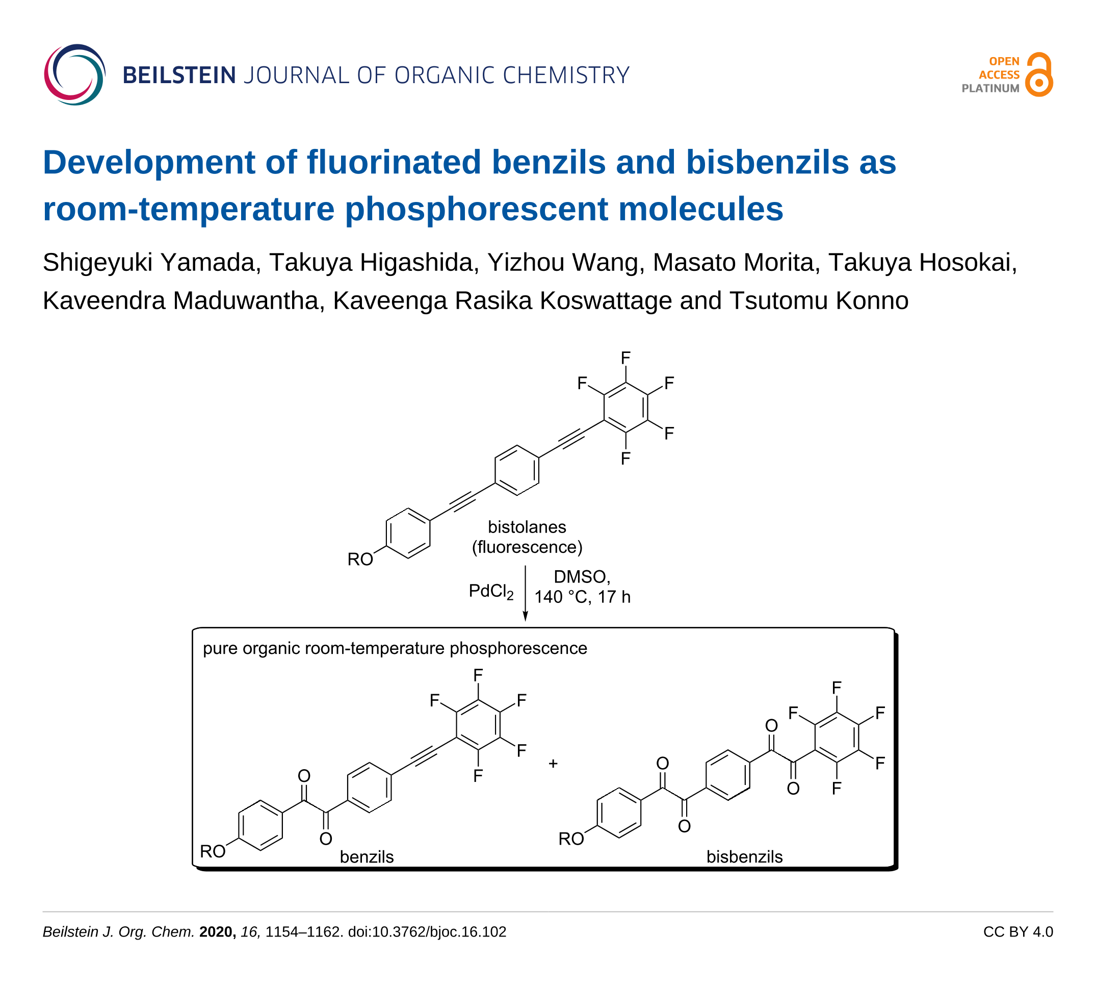 Yamada, S.; Higashida, T.; Wang, Y.; Morita, M.; Hosokai, T.; Maduwantha, K.; Koswattage, K. R.; Konno, T. Beilstein J. Org. Chem. 2020, 16, 1154–1162. doi:10.3762/bjoc.16.102