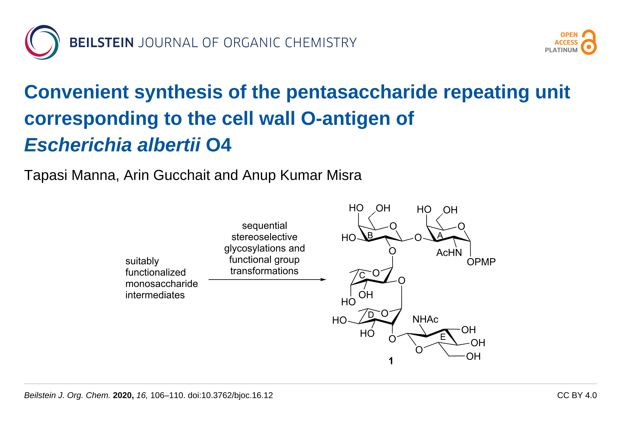 Manna, T.; Gucchait, A.; Misra, A. K. Beilstein J. Org. Chem. 2020, 16, 106–110. doi:10.3762/bjoc.16.12