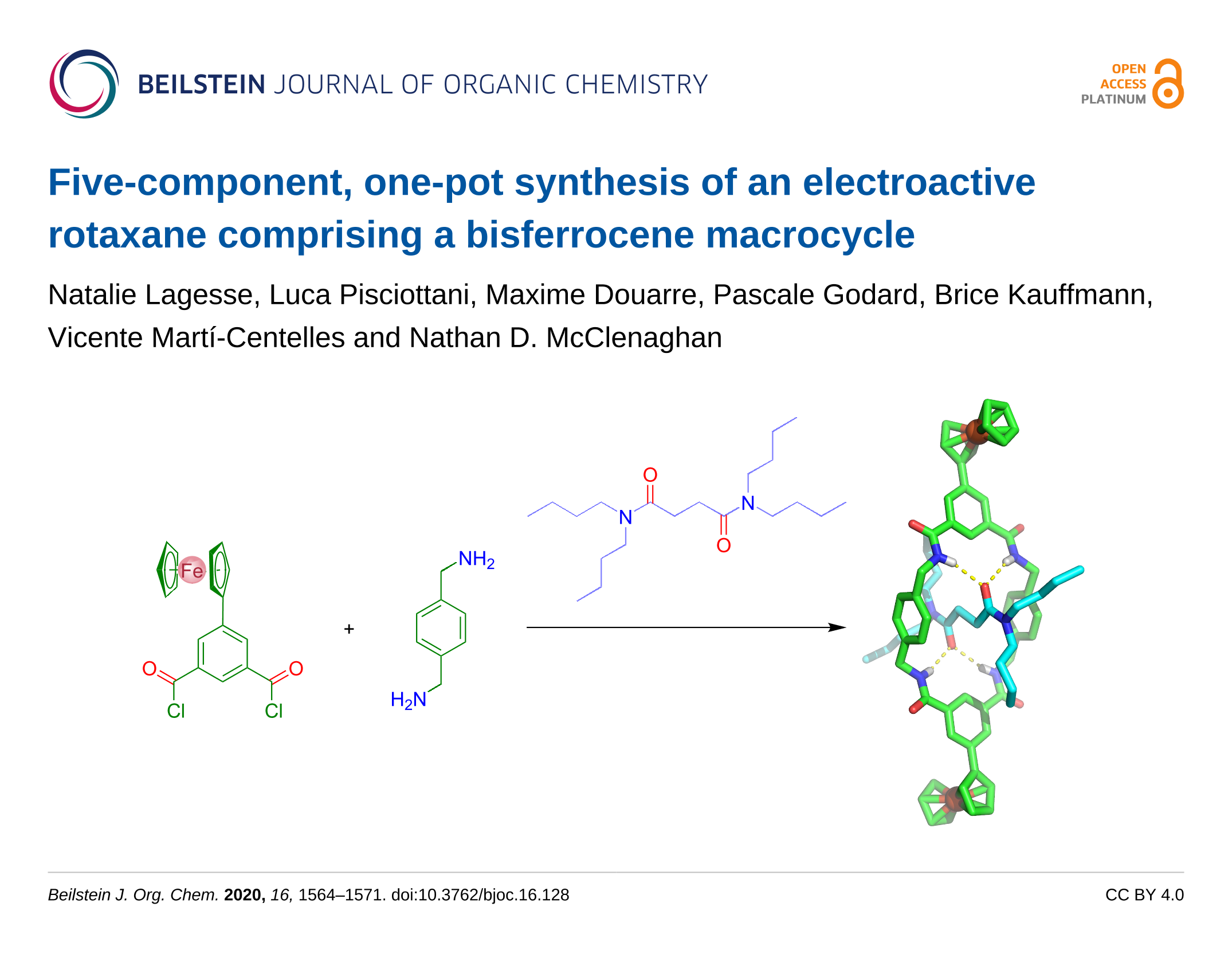 Lagesse, N.; Pisciottani, L.; Douarre, M.; Godard, P.; Kauffmann, B.; Martí-Centelles, V.; McClenaghan, N. D. Beilstein J. Org. Chem. 2020, 16, 1564–1571. doi:10.3762/bjoc.16.128
