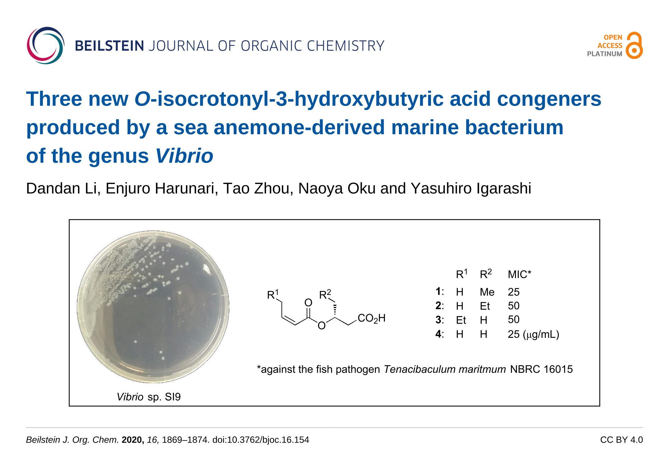 Li, D.; Harunari, E.; Zhou, T.; Oku, N.; Igarashi, Y. Beilstein J. Org. Chem. 2020, 16, 1869–1874. doi:10.3762/bjoc.16.154
