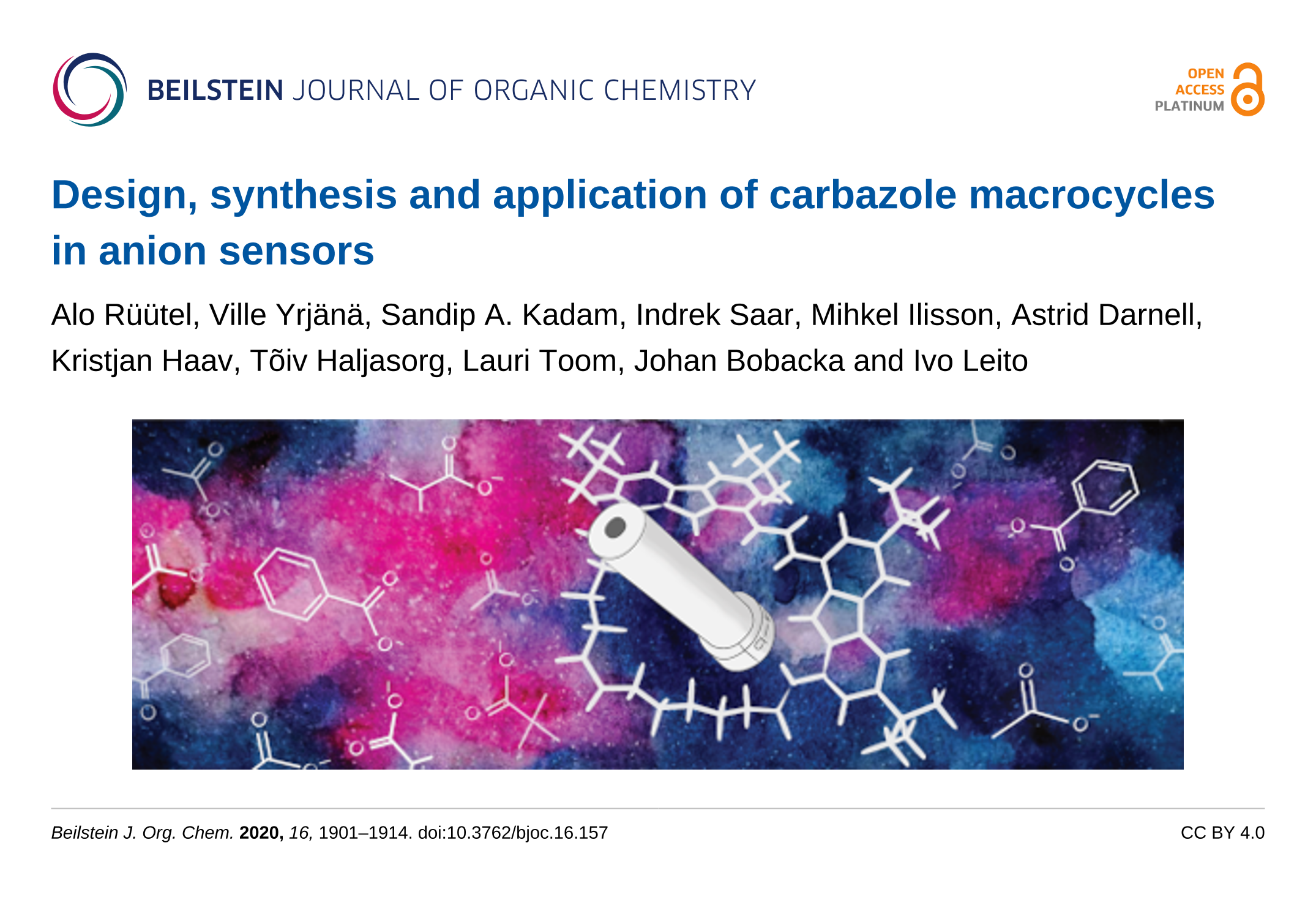 Rüütel, A.; Yrjänä, V.; Kadam, S. A.; Saar, I.; Ilisson, M.; Darnell, A.; Haav, K.; Haljasorg, T.; Toom, L.; Bobacka, J.; Leito, I. Beilstein J. Org. Chem. 2020, 16, 1901–1914. doi:10.3762/bjoc.16.157