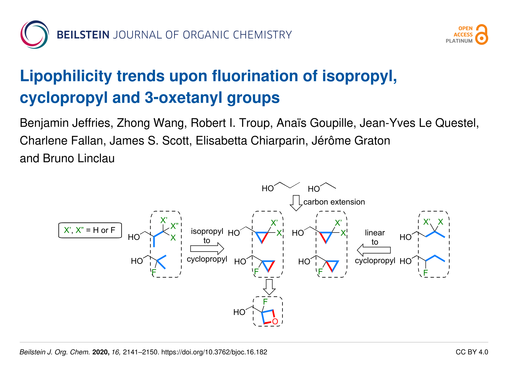 Jeffries, B.; Wang, Z.; Troup, R. I.; Goupille, A.; Le Questel, J.-Y.; Fallan, C.; Scott, J. S.; Chiarparin, E.; Graton, J.; Linclau, B. Beilstein J. Org. Chem. 2020, 16, 2141–2150. doi:10.3762/bjoc.16.182