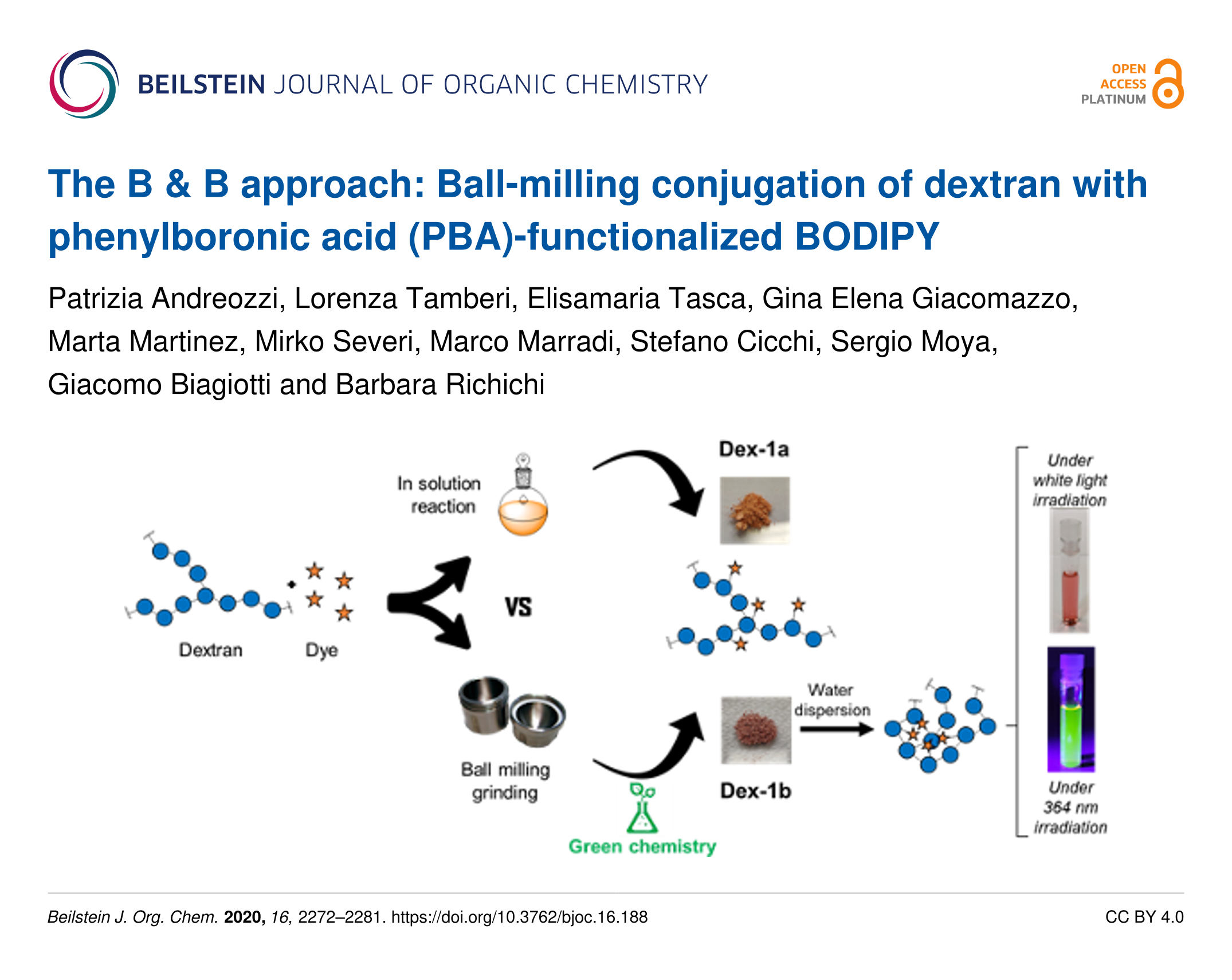 The B & B approach: Ball-milling conjugation of dextran with phenylboronic acid (PBA)-functionalized BODIPY