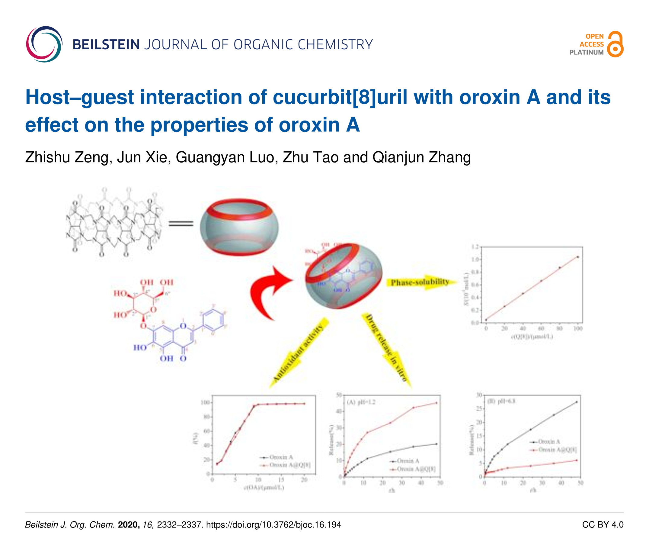 - Zhang, L.; Zheng, J.; Luo, G.; Li, X.; Zhang, Y.; Tao, Z.; Zhang, Q. Host-guest interaction and properties of cucurbit[8]uril with chloramphenicol. Beilstein journal of organic chemistry 2021, 17, 2832–2839. doi:10.3762/bjoc.17.194