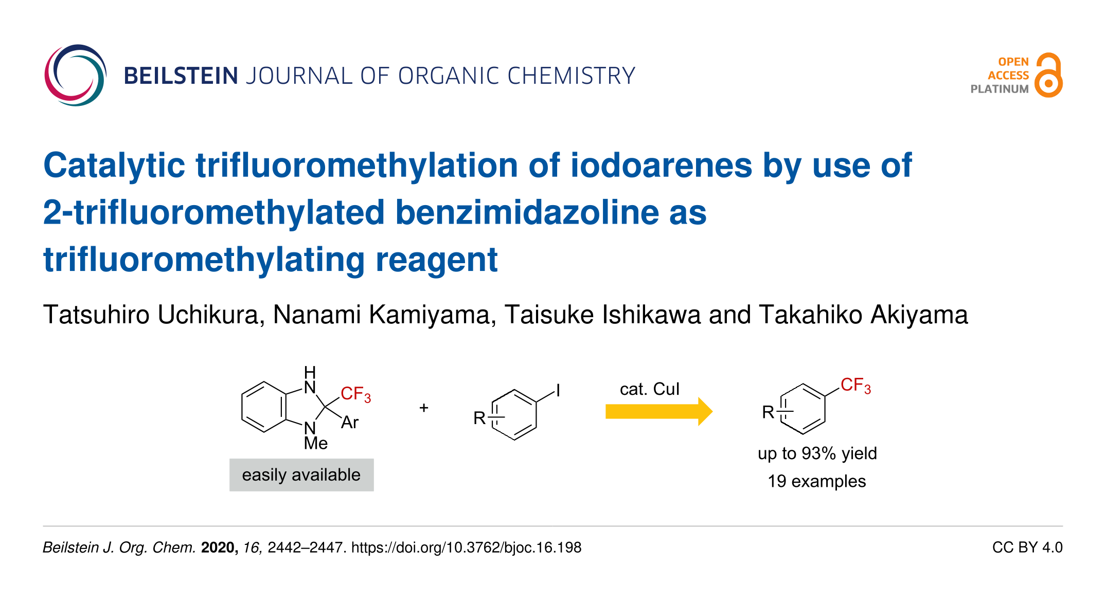 Uchikura, T.; Kamiyama, N.; Ishikawa, T.; Akiyama, T. Beilstein J. Org. Chem. 2020, 16, 2442–2447. doi:10.3762/bjoc.16.198