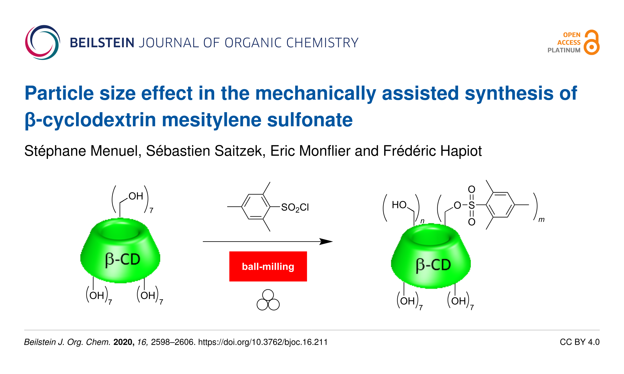 Particle size effect in the mechanically assisted synthesis of β-cyclodextrin mesitylene sulfonate