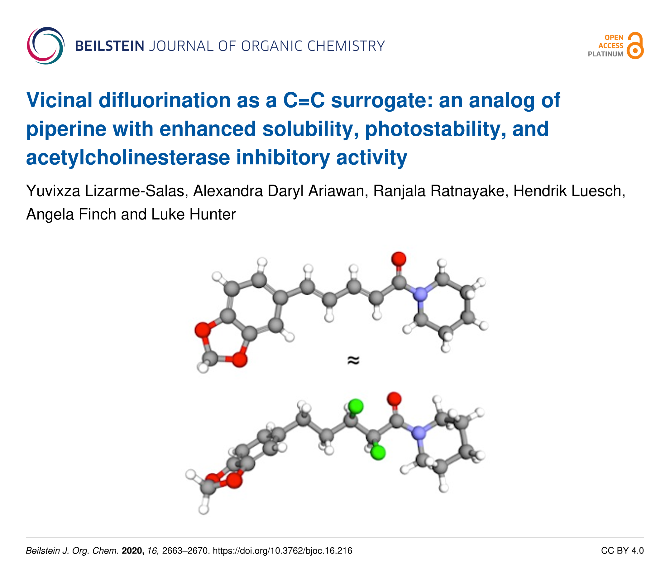 Vicinal difluorination as a C=C surrogate: an analog of piperine with enhanced solubility, photostability, and acetylcholinesterase inhibitory activity