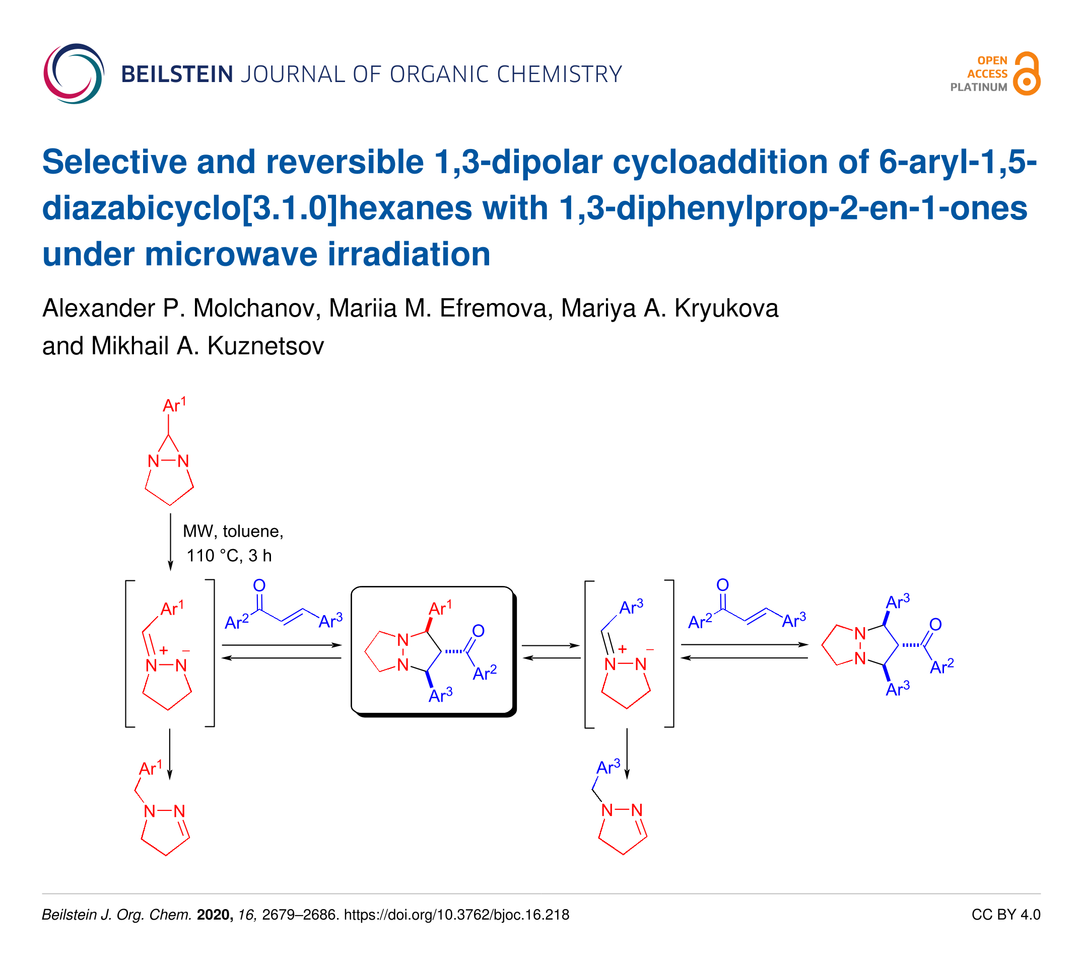 Selective and reversible 1,3-dipolar cycloaddition of 6-aryl-1,5-diazabicyclo[3.1.0]hexanes with 1,3-diphenylprop-2-en-1-ones under microwave irradiation