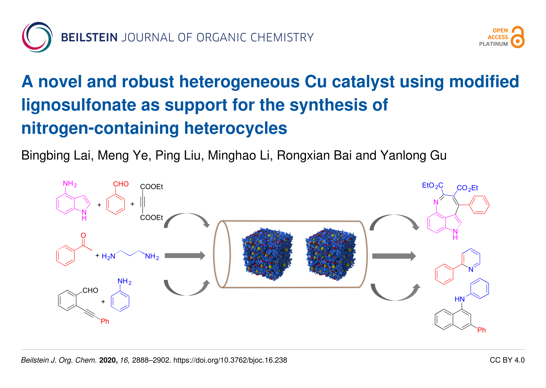 A novel and robust heterogeneous Cu catalyst using modified lignosulfonate as support for the synthesis of nitrogen-containing heterocycles