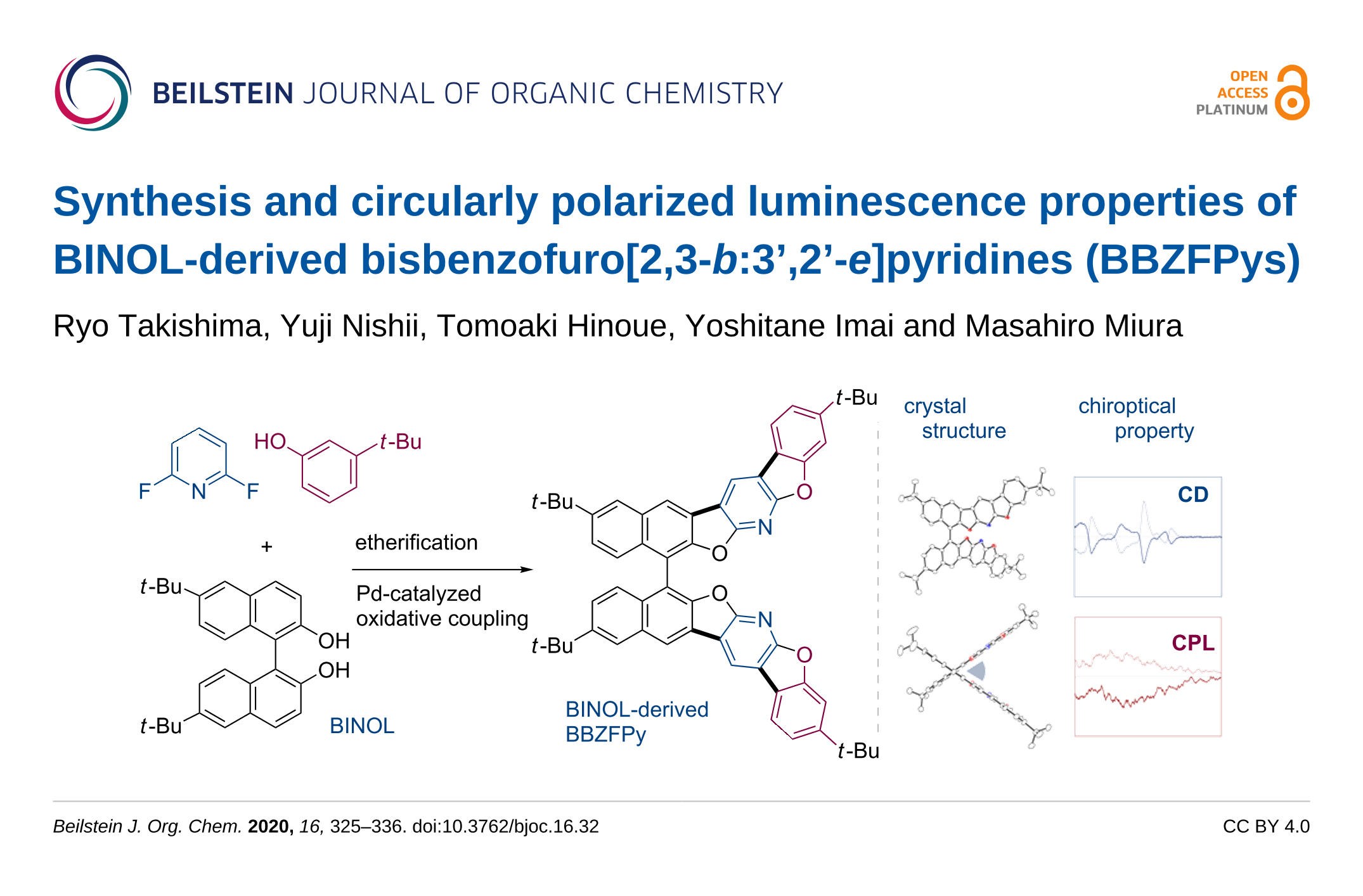 Synthesis and circularly polarized luminescence properties of BINOL-derived bisbenzofuro[2,3-b:3’,2’-e]pyridines (BBZFPys)