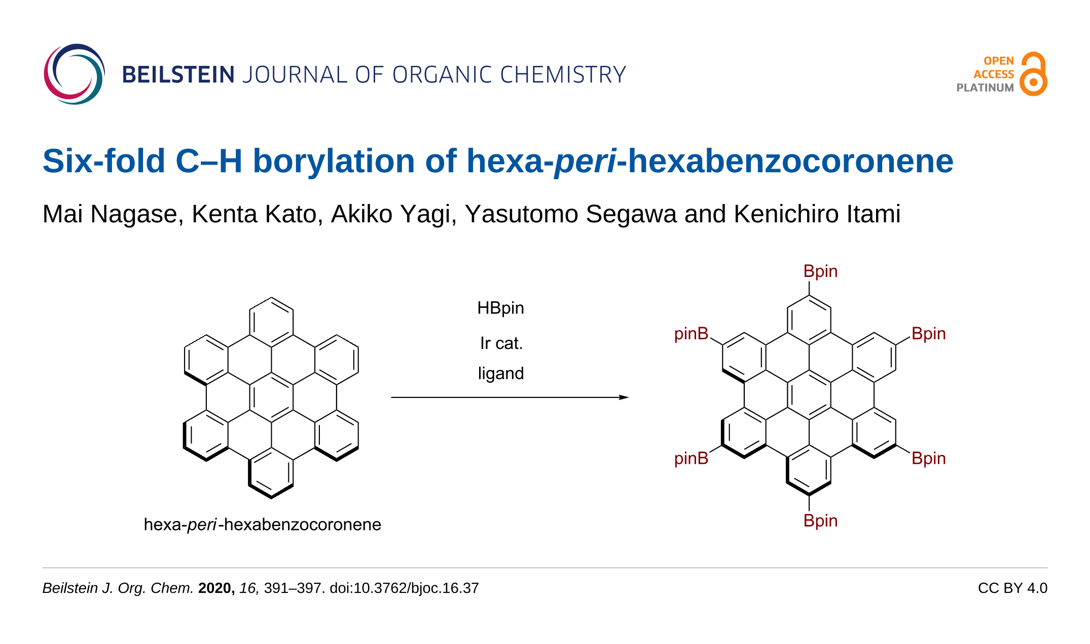 Nagase, M.; Kato, K.; Yagi, A.; Segawa, Y.; Itami, K. Beilstein J. Org. Chem. 2020, 16, 391–397. doi:10.3762/bjoc.16.37