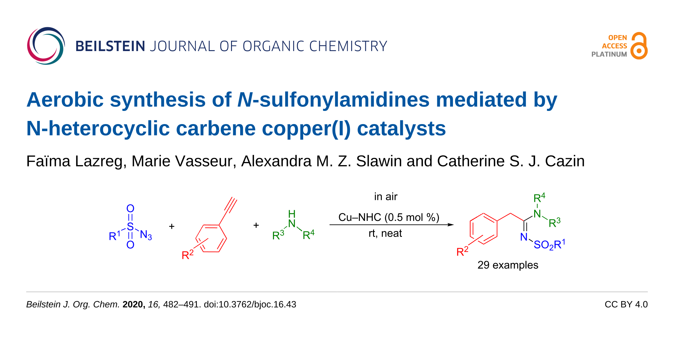 Lazreg, F.; Vasseur, M.; Slawin, A. M. Z.; Cazin, C. S. J. Beilstein J. Org. Chem. 2020, 16, 482–491. doi:10.3762/bjoc.16.43
