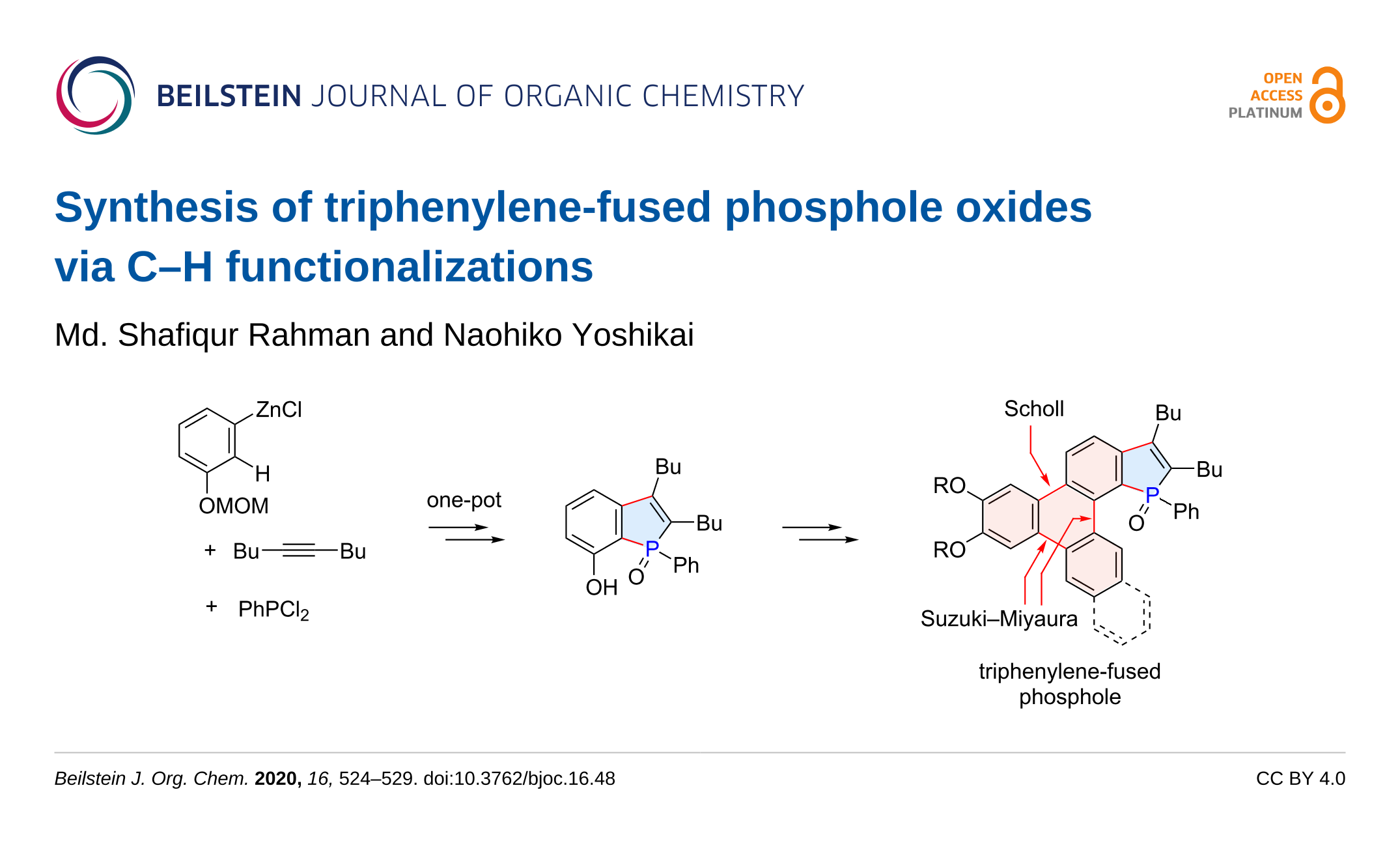 Synthesis of triphenylene-fused phosphole oxides via C–H functionalizations