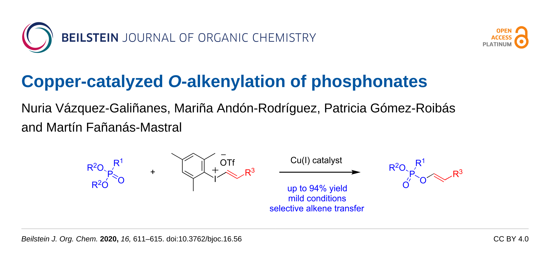 Vázquez-Galiñanes, N.; Andón-Rodríguez, M.; Gómez-Roibás, P.; Fañanás-Mastral, M. Beilstein J. Org. Chem. 2020, 16, 611–615. doi:10.3762/bjoc.16.56