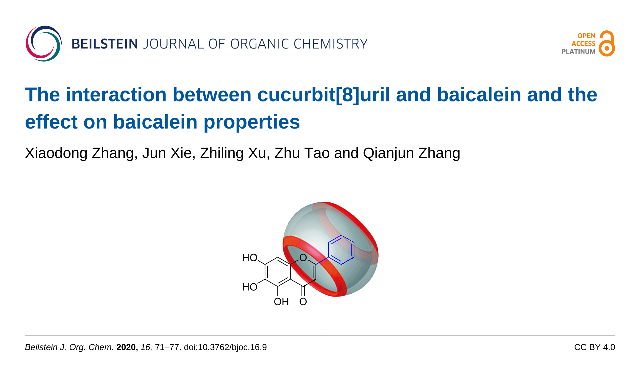 - Zeng, Z.; Xie, J.; Luo, G.; Tao, Z.; Zhang, Q. Host-guest interaction of cucurbit[8]uril with oroxin A and its effect on the properties of oroxin A. Beilstein journal of organic chemistry 2020, 16, 2332–2337. doi:10.3762/bjoc.16.194