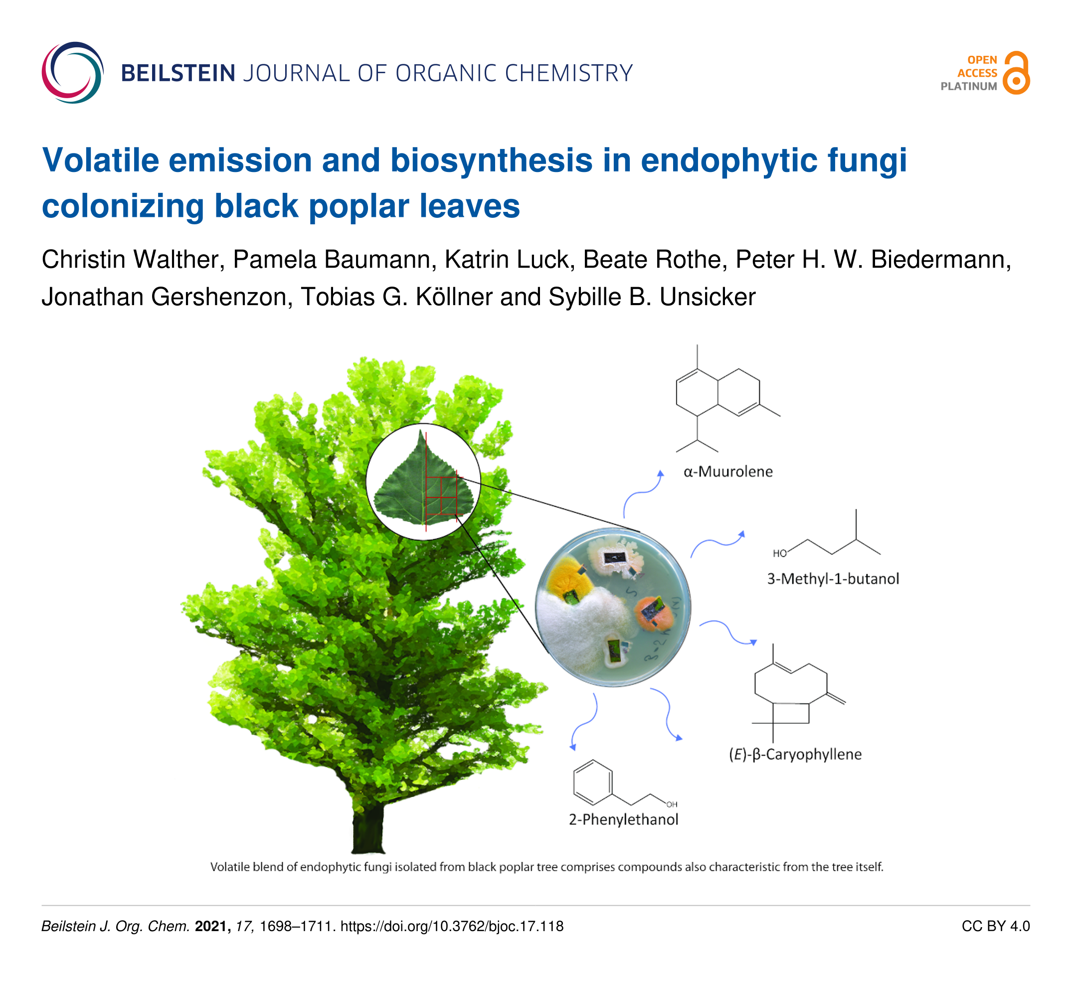 Walther, C.; Baumann, P.; Luck, K.; Rothe, B.; Biedermann, P. H. W.; Gershenzon, J.; Köllner, T. G.; Unsicker, S. B. Beilstein J. Org. Chem. 2021, 17, 1698–1711. doi:10.3762/bjoc.17.118