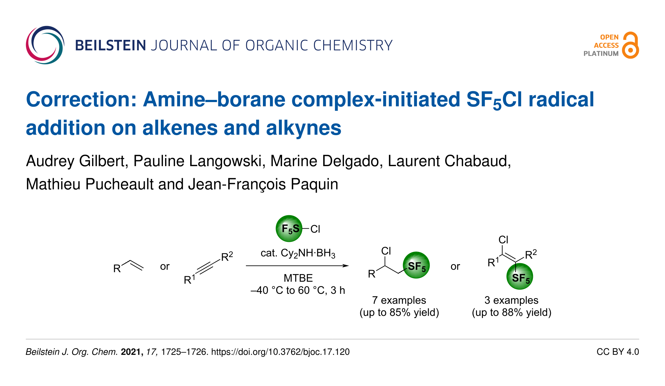 Correction: Amine–borane complex-initiated SF5Cl radical addition on alkenes and alkynes