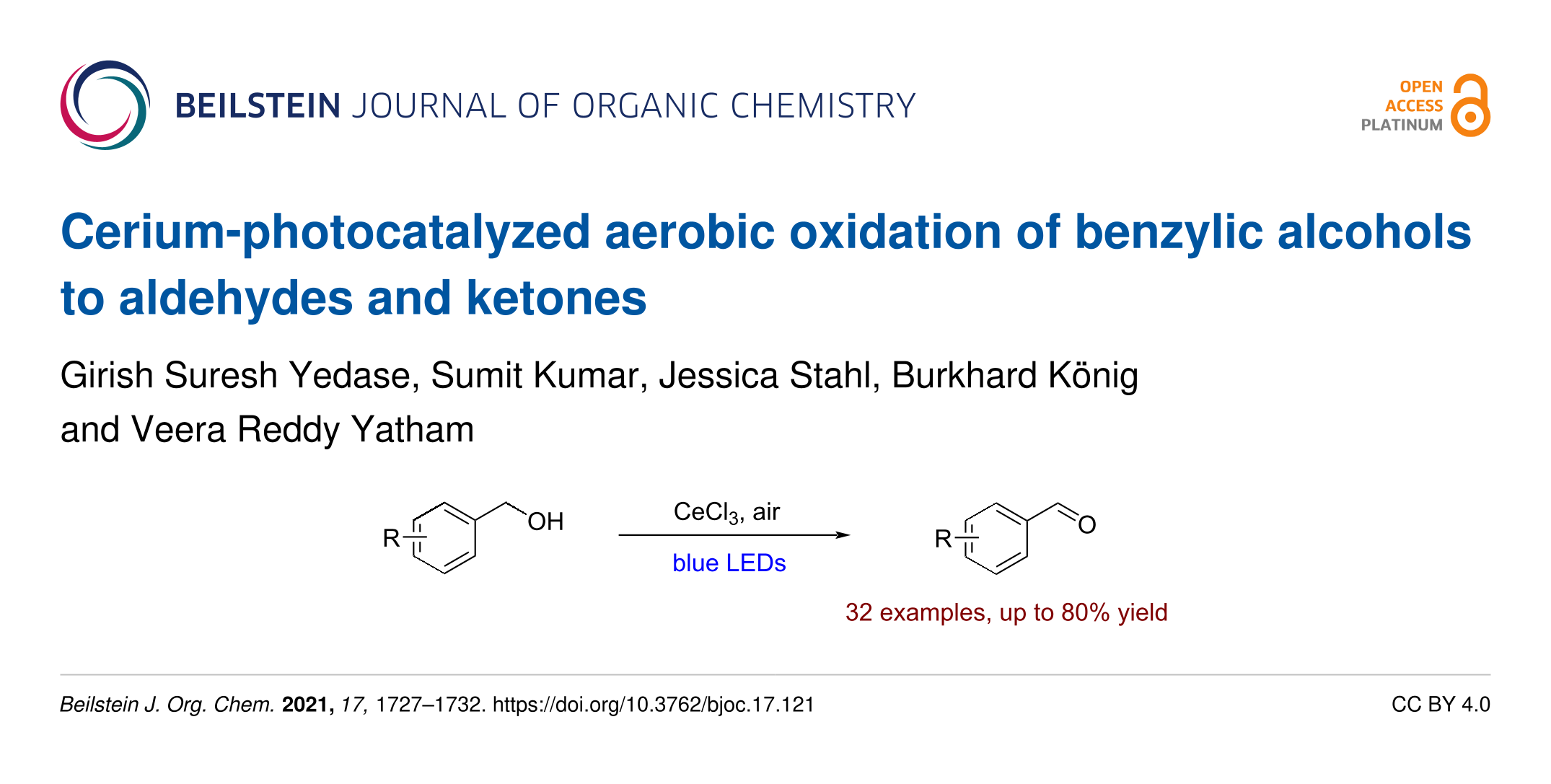 Yedase, G. S.; Kumar, S.; Stahl, J.; König, B.; Yatham, V. R. Beilstein J. Org. Chem. 2021, 17, 1727–1732. doi:10.3762/bjoc.17.121