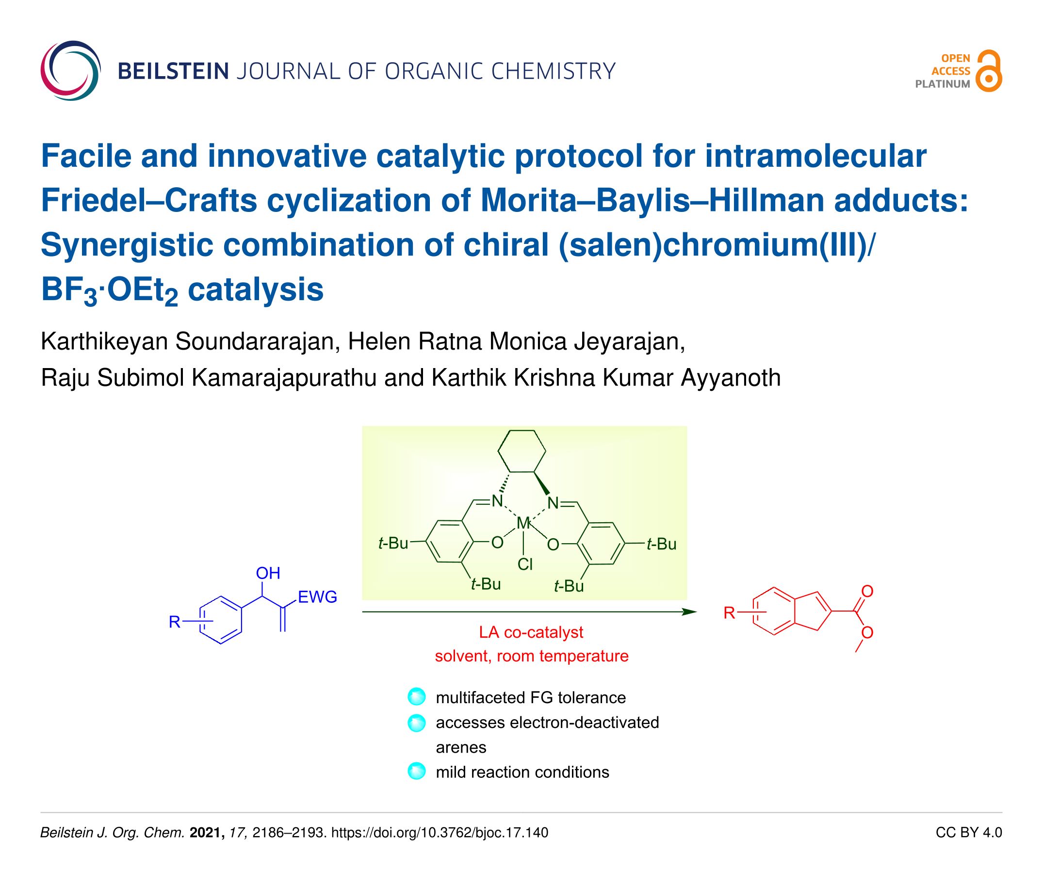 Soundararajan, K.; Jeyarajan, H. R. M.; Kamarajapurathu, R. S.; Ayyanoth, K. K. K. Beilstein J. Org. Chem. 2021, 17, 2186–2193. doi:10.3762/bjoc.17.140