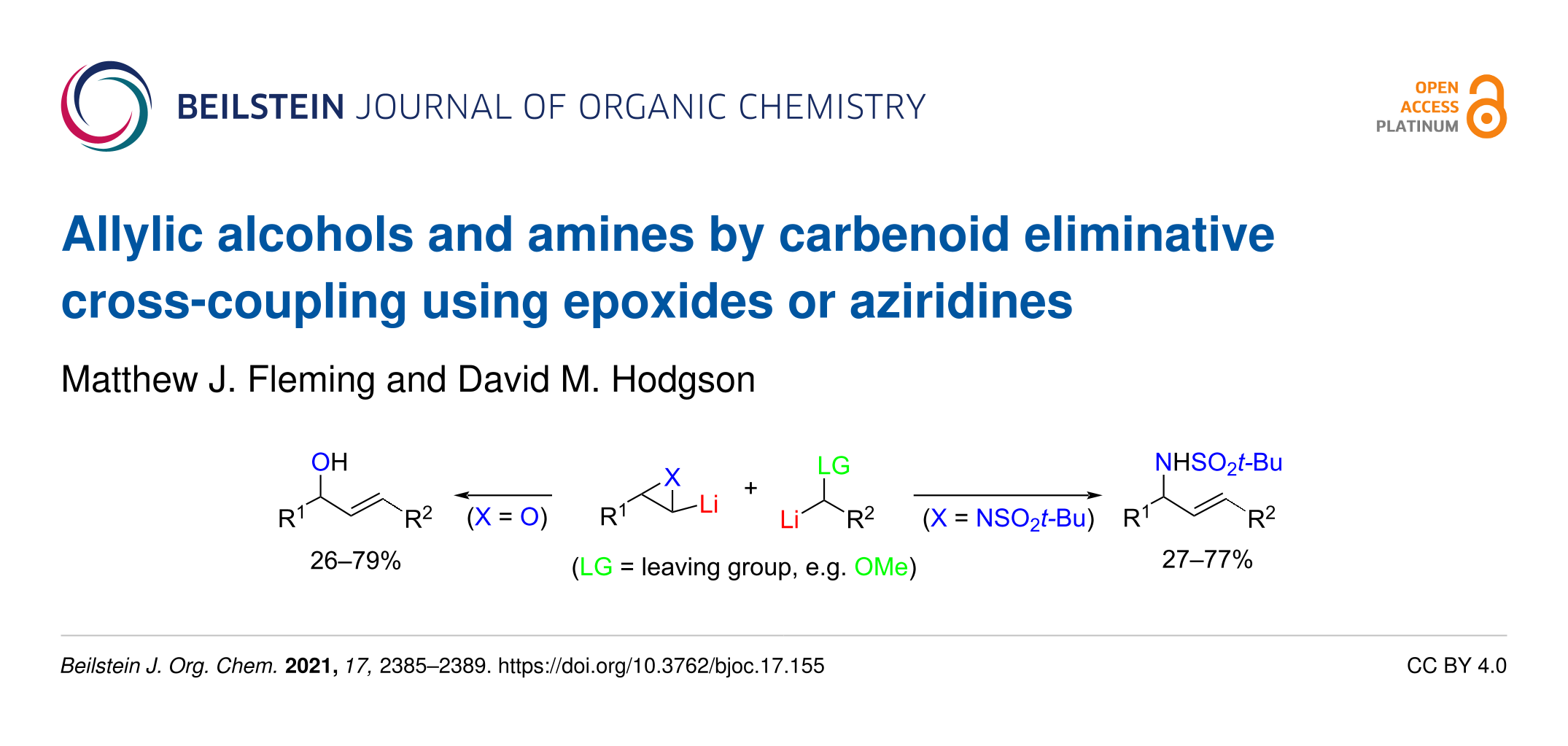 Fleming, M. J.; Hodgson, D. M. Beilstein J. Org. Chem. 2021, 17, 2385–2389. doi:10.3762/bjoc.17.155