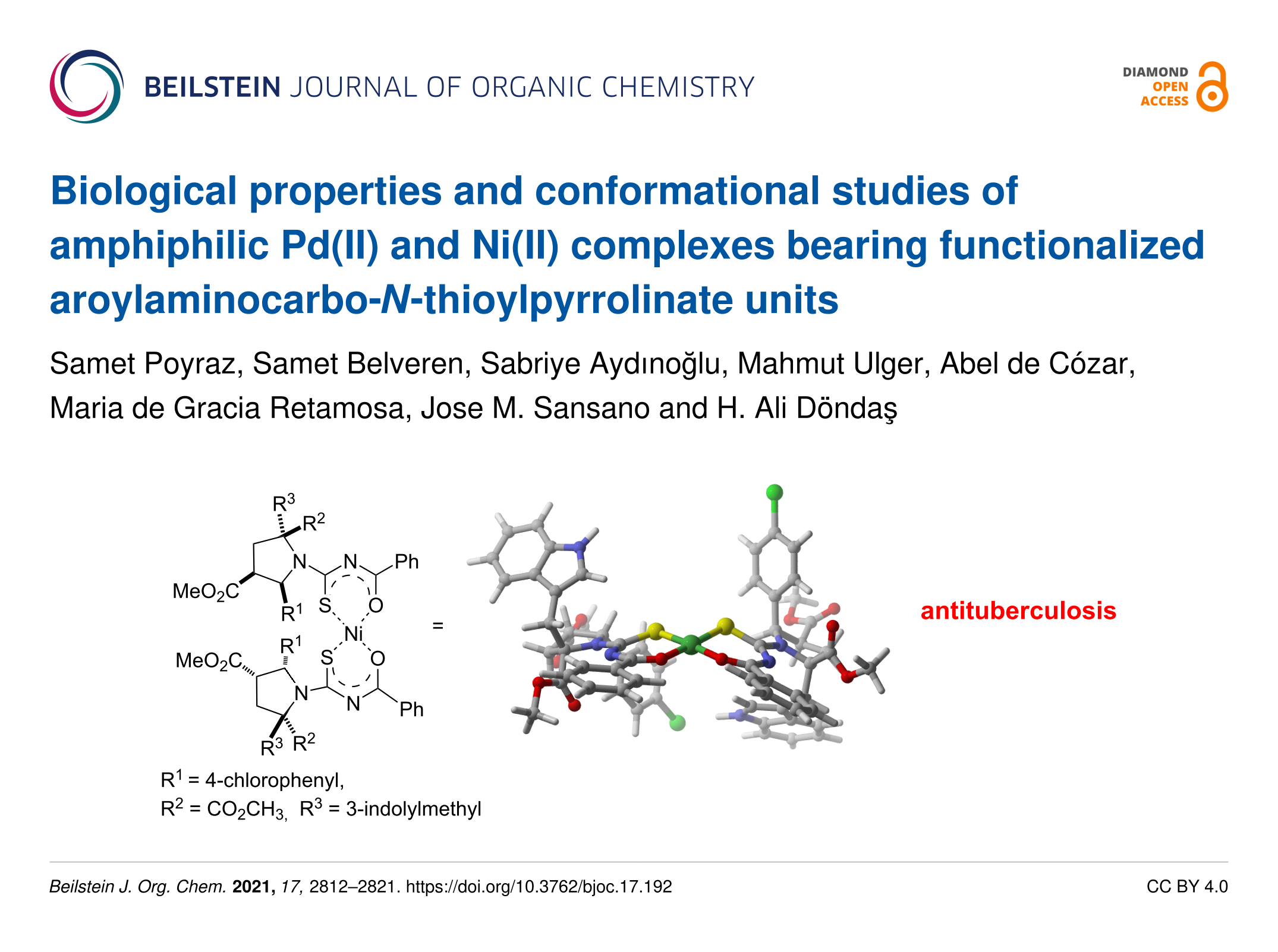 Poyraz, S.; Belveren, S.; Aydınoğlu, S.; Ulger, M.; de Cózar, A.; de Gracia Retamosa, M.; Sansano, J. M.; Döndaş, H. A. Beilstein J. Org. Chem. 2021, 17, 2812–2821. doi:10.3762/bjoc.17.192