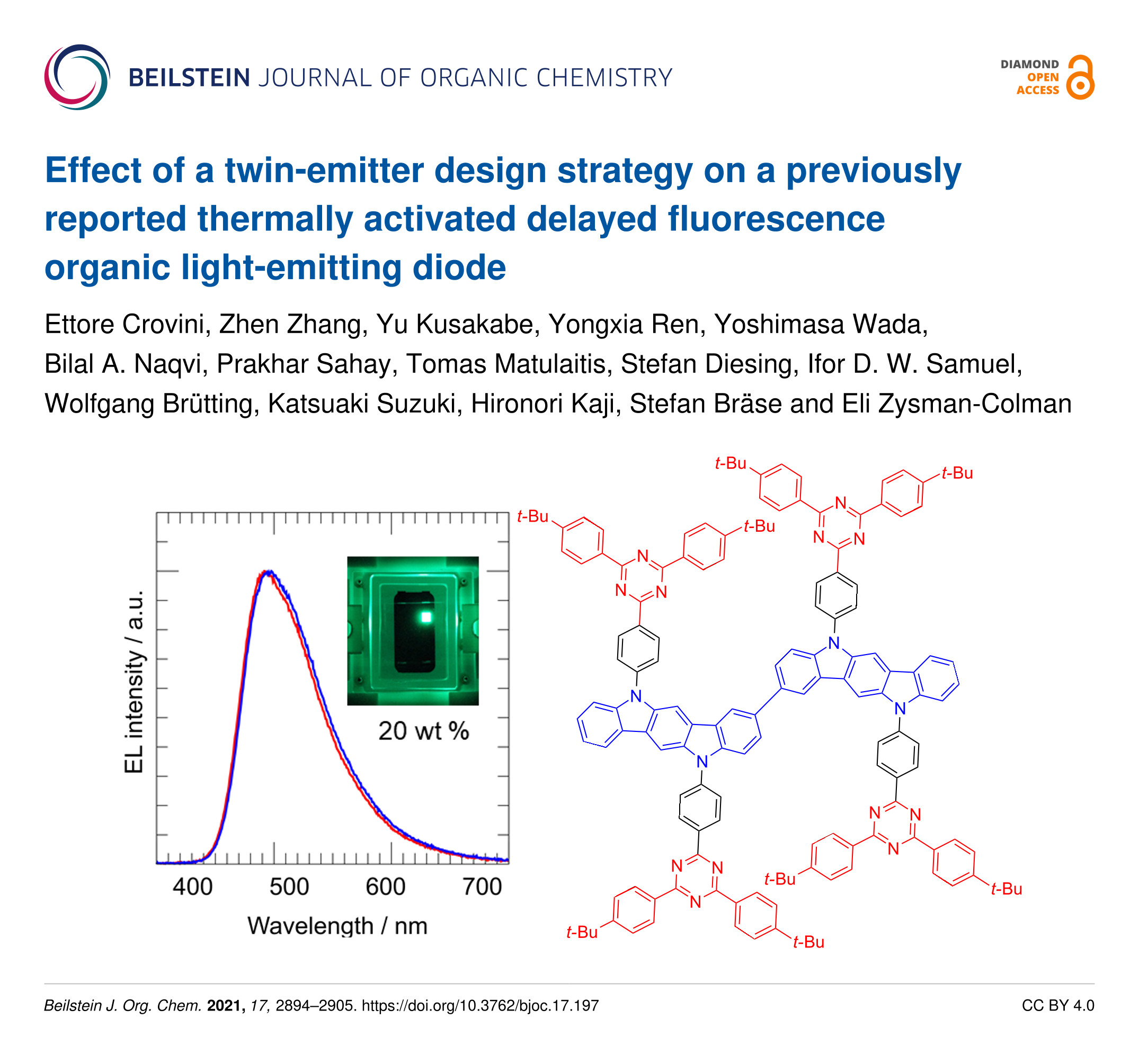 Crovini, E.; Zhang, Z.; Kusakabe, Y.; Ren, Y.; Wada, Y.; Naqvi, B. A.; Sahay, P.; Matulaitis, T.; Diesing, S.; Samuel, I. D. W.; Brütting, W.; Suzuki, K.; Kaji, H.; Bräse, S.; Zysman-Colman, E. Beilstein J. Org. Chem. 2021, 17, 2894–2905. doi:10.3762/bjoc.17.197