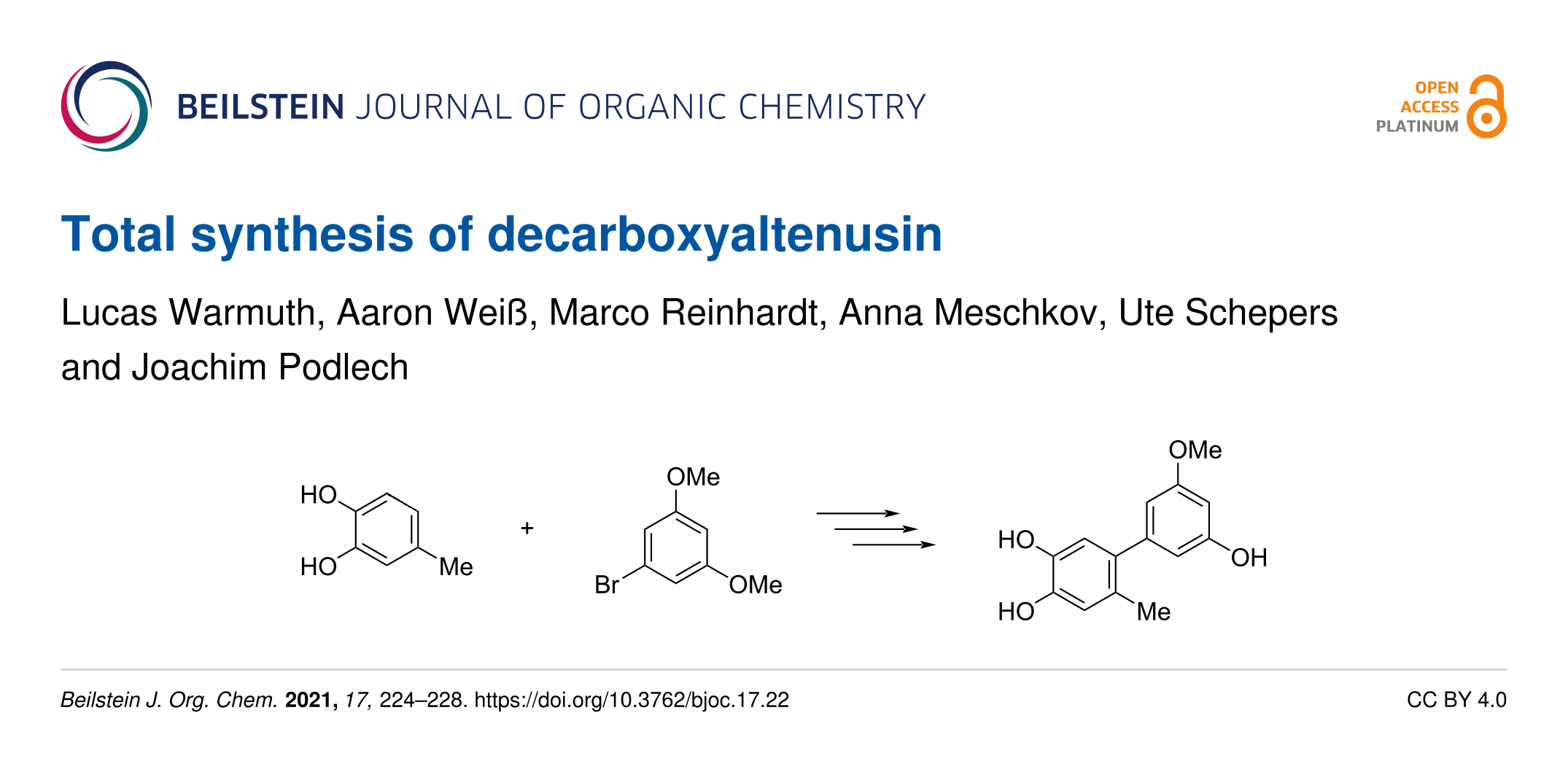 Warmuth, L.; Weiß, A.; Reinhardt, M.; Meschkov, A.; Schepers, U.; Podlech, J. Beilstein J. Org. Chem. 2021, 17, 224–228. doi:10.3762/bjoc.17.22