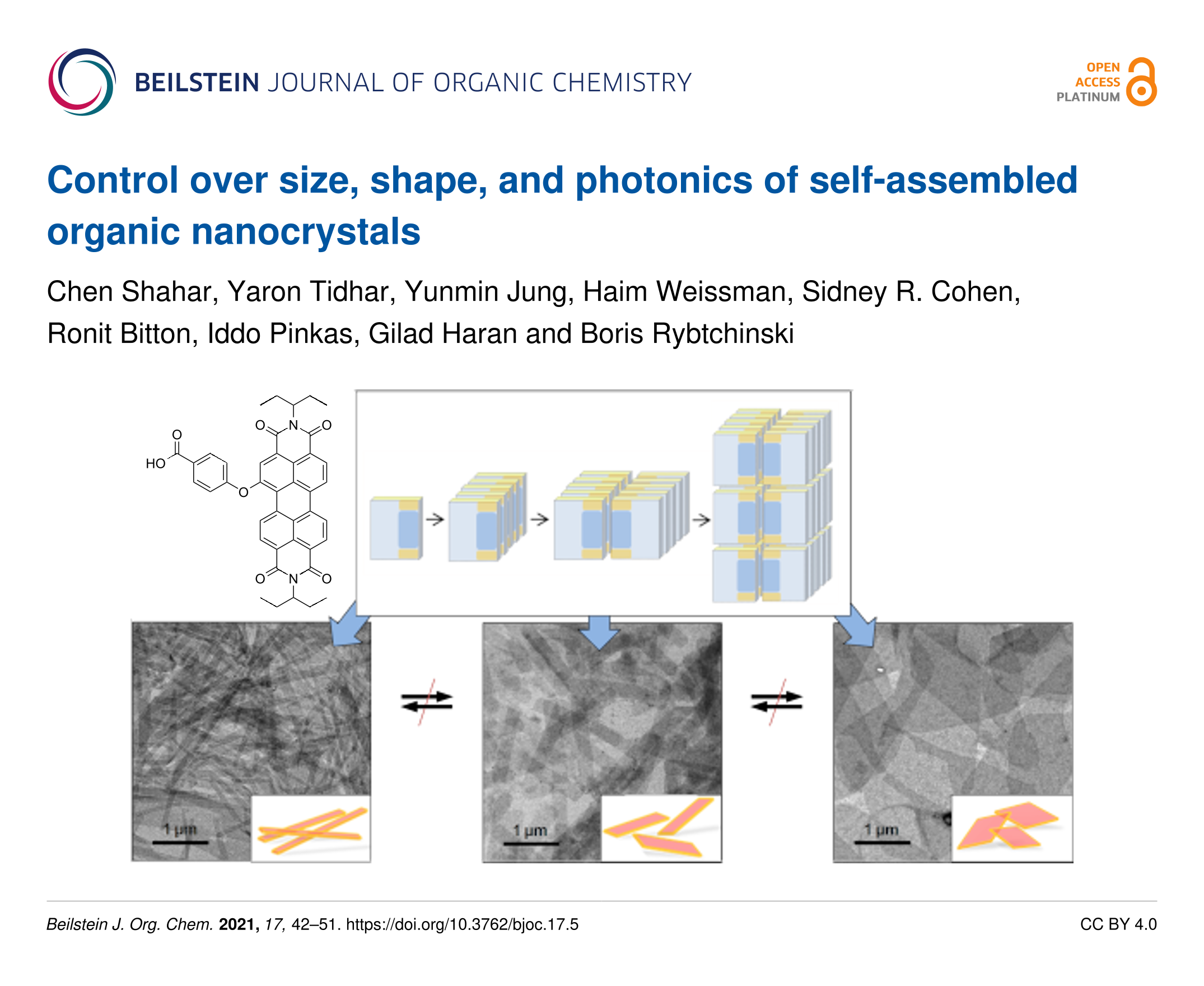 Shahar, C.; Tidhar, Y.; Jung, Y.; Weissman, H.; Cohen, S. R.; Bitton, R.; Pinkas, I.; Haran, G.; Rybtchinski, B. Beilstein J. Org. Chem. 2021, 17, 42–51. doi:10.3762/bjoc.17.5