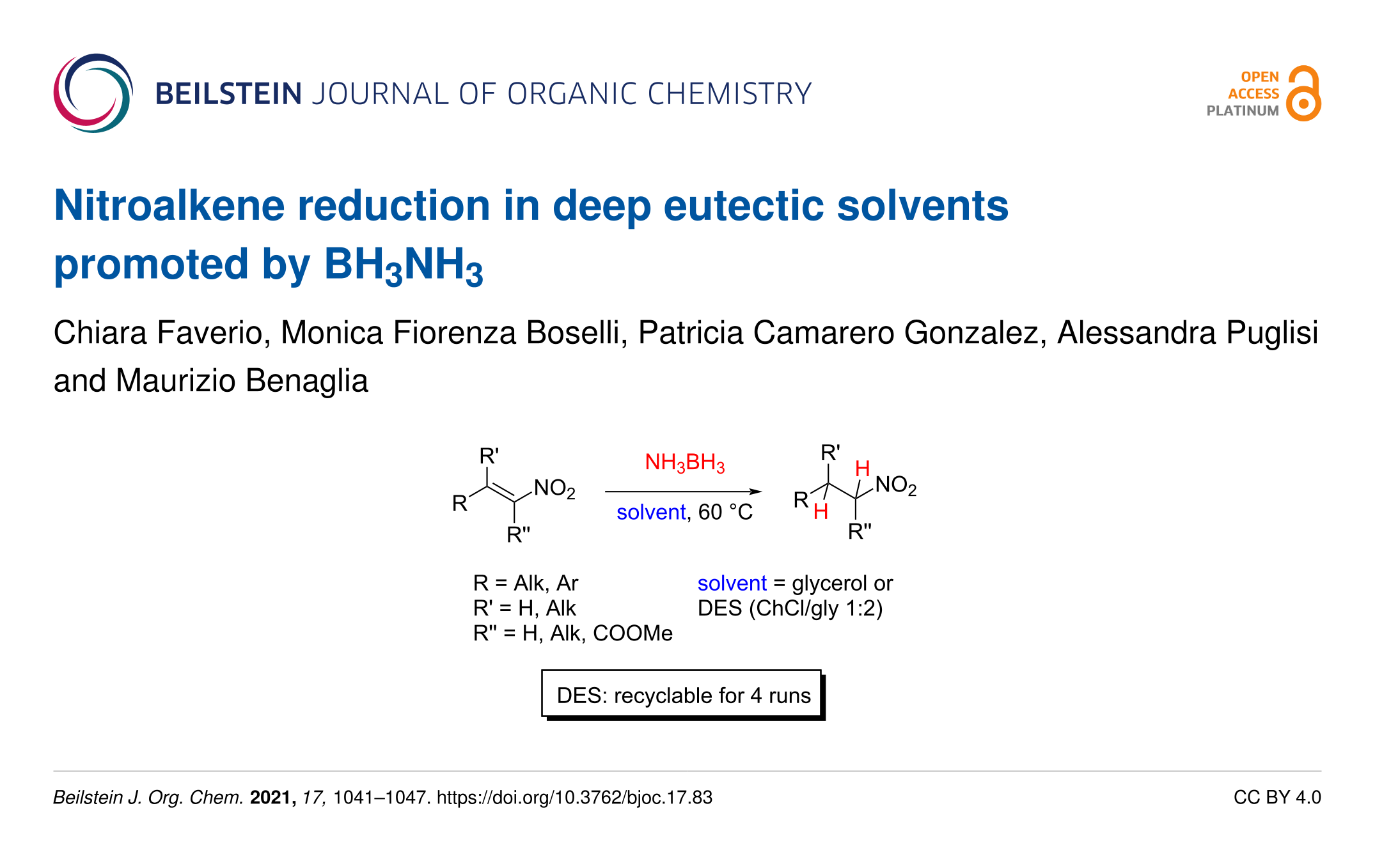 Faverio, C.; Boselli, M. F.; Camarero Gonzalez, P.; Puglisi, A.; Benaglia, M. Beilstein J. Org. Chem. 2021, 17, 1041–1047. doi:10.3762/bjoc.17.83