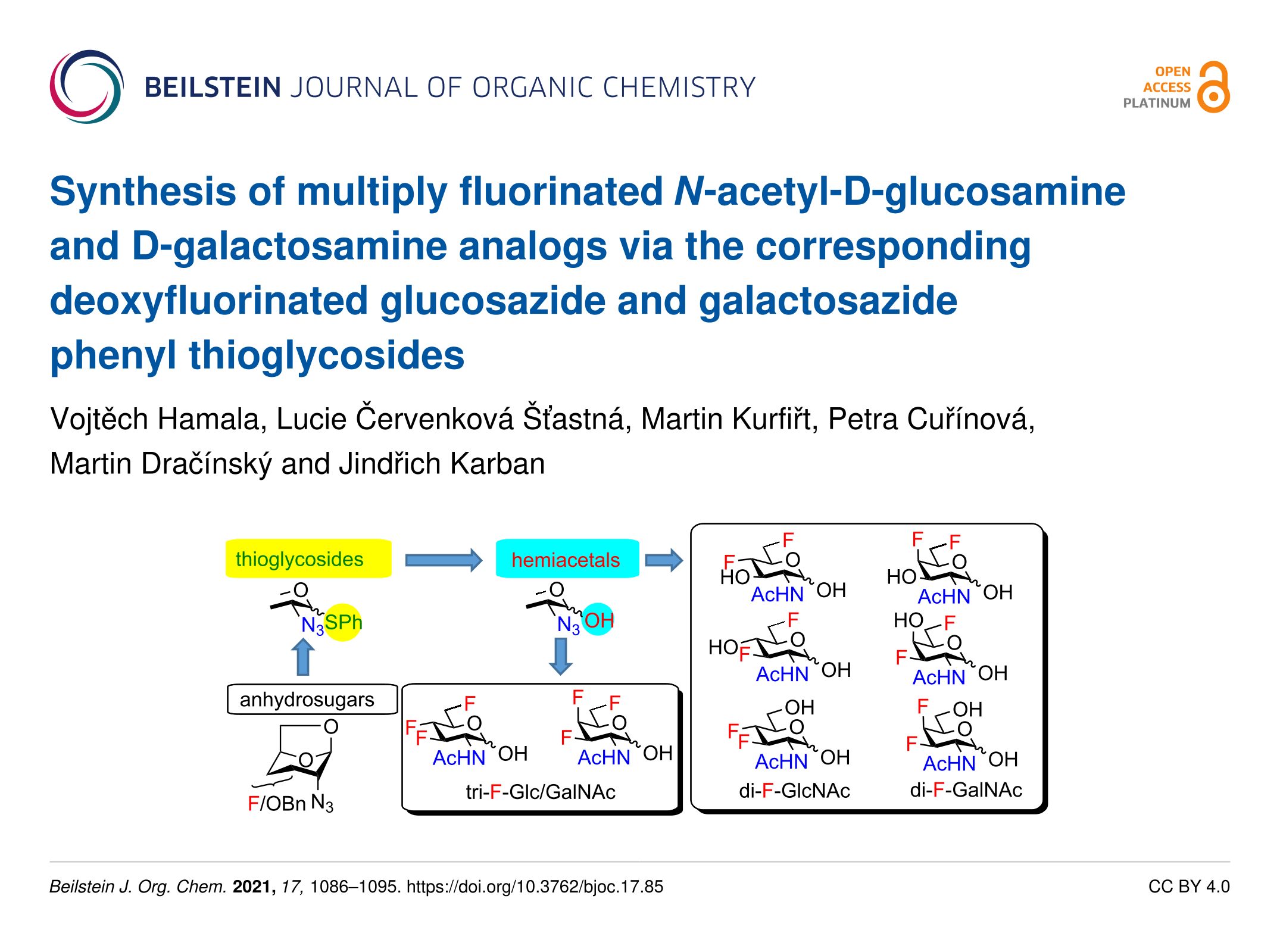 - Kurfiřt, M.; Št'astná, L. Č.; Dračínský, M.; Pohl, R.; Císařová, I.; Sýkora, J.; Balouch, M.; Baka, M.; Hamala, V.; Cañada, F. J.; Ardá, A.; Jiménez-Barbero, J.; Karban, J. Influence of Selective Deoxyfluorination on the Molecular Structure of Type-2 N-Acetyllactosamine. The Journal of organic chemistry 2024, 89, 11875–11890. doi:10.1021/acs.joc.4c00879