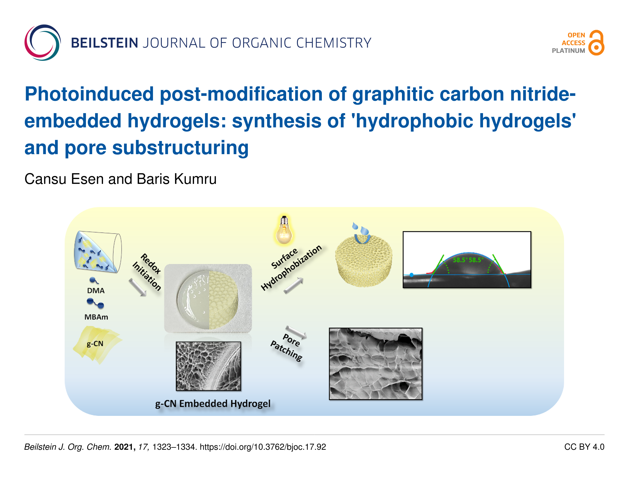 - Esen, C.; Kumru, B. Light-Driven Integration of Graphitic Carbon Nitride into Polymer Materials. In The 2nd International Online Conference on Polymer Science—Polymers and Nanotechnology for Industry 4.0, MDPI, 2021; 9. doi:10.3390/iocps2021-11590