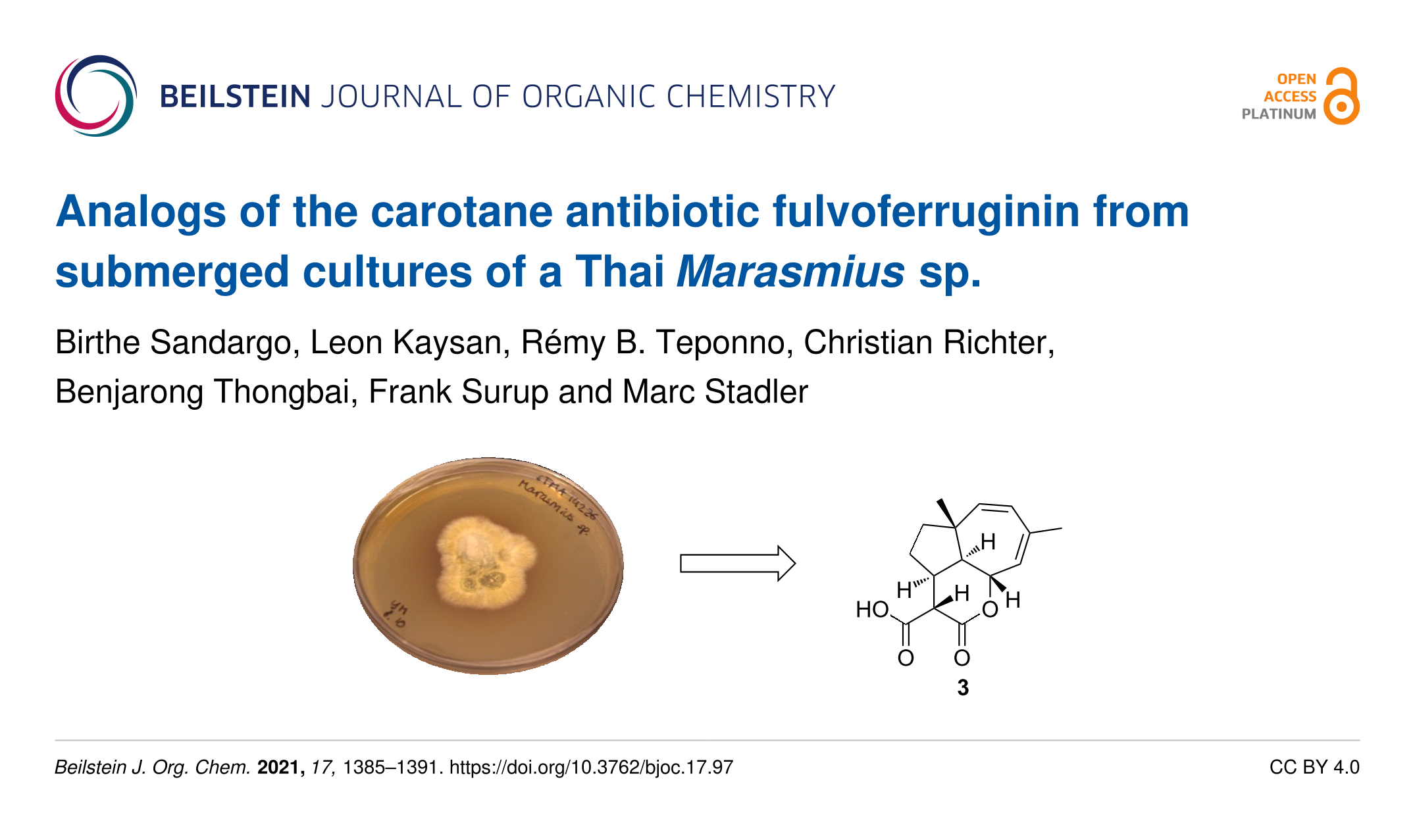 Sandargo, B.; Kaysan, L.; Teponno, R. B.; Richter, C.; Thongbai, B.; Surup, F.; Stadler, M. Beilstein J. Org. Chem. 2021, 17, 1385–1391. doi:10.3762/bjoc.17.97