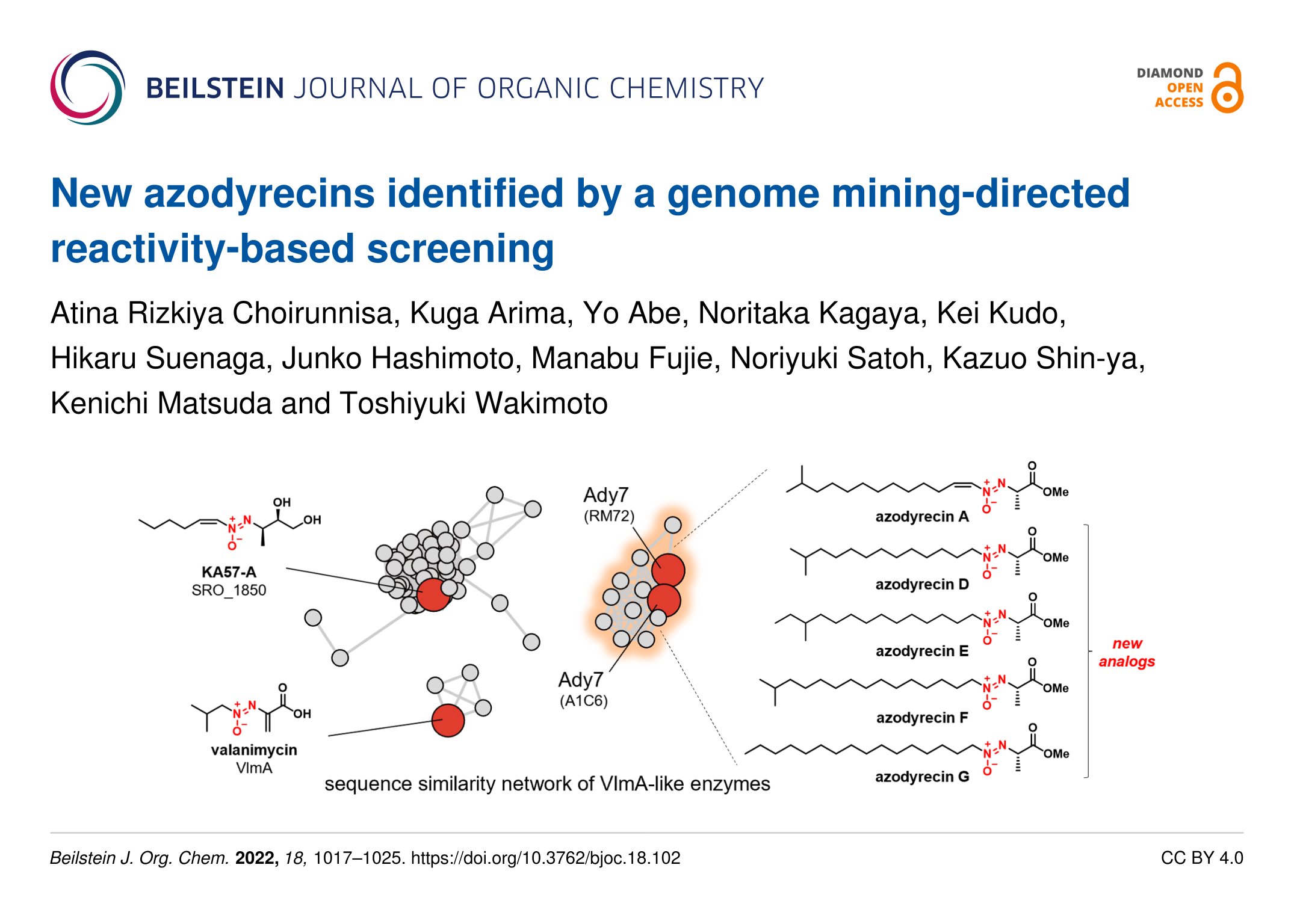 Choirunnisa, A. R.; Arima, K.; Abe, Y.; Kagaya, N.; Kudo, K.; Suenaga, H.; Hashimoto, J.; Fujie, M.; Satoh, N.; Shin-ya, K.; Matsuda, K.; Wakimoto, T. Beilstein J. Org. Chem. 2022, 18, 1017–1025. doi:10.3762/bjoc.18.102