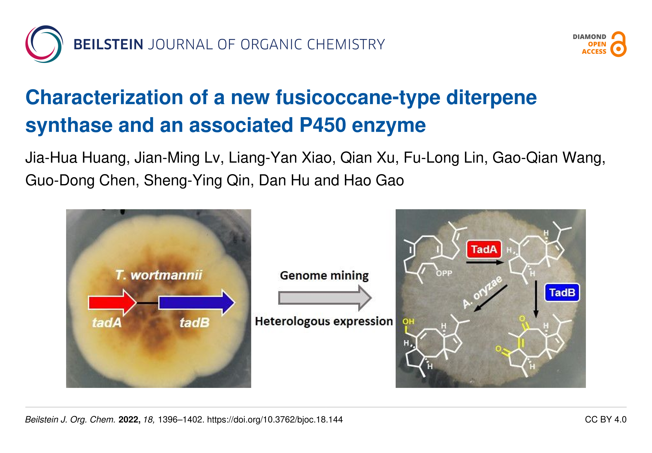 - Lin, F.-L.; Taizoumbe, K. A.; Wang, Y.-X.; Huang, J.-H.; Wang, G.-Q.; Chen, G.-D.; Lv, J.-M.; Hu, D.; Gao, H.; Dickschat, J. S. Mechanistic characterisation of a fungal fusicoccane-type diterpene synthase involved in the biosynthesis of talaro-7,13-diene. Organic & biomolecular chemistry 2024, 22, 7971–7975. doi:10.1039/d4ob01348d