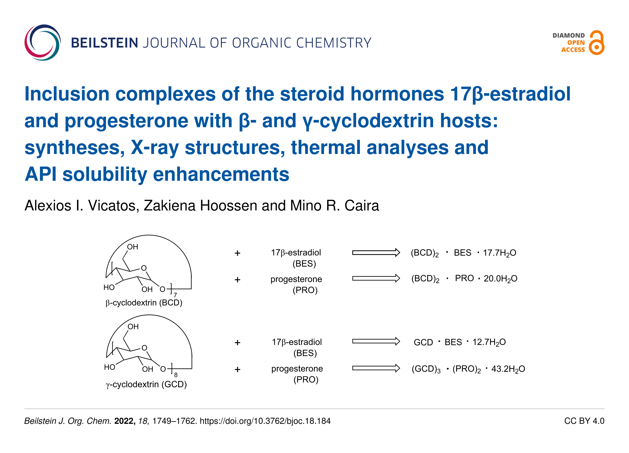 Inclusion complexes of the steroid hormones 17β-estradiol and progesterone with β- and γ-cyclodextrin hosts: syntheses, X-ray structures, thermal analyses and API solubility enhancements