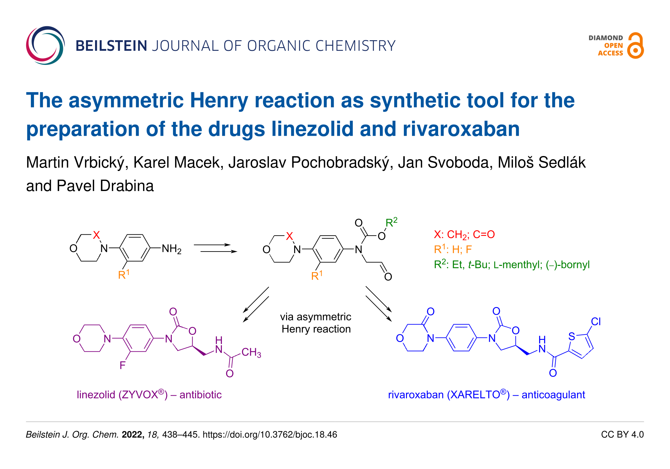- Zhang, Y.; Xiao, W. Cu-diamine ligand-controlled asymmetric Henry reactions and their application in concise total syntheses of linezolid and rivaroxaban. RSC advances 2025, 15, 35292–35295. doi:10.1039/d5ra05795g