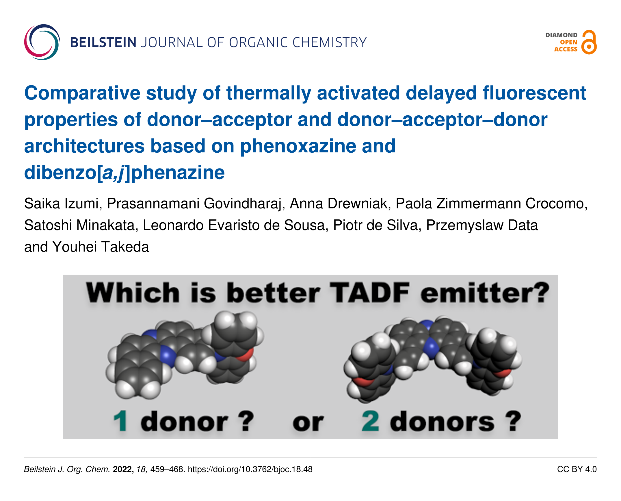 Izumi, S.; Govindharaj, P.; Drewniak, A.; Crocomo, P. Z.; Minakata, S.; de Sousa, L. E.; de Silva, P.; Data, P.; Takeda, Y. Beilstein J. Org. Chem. 2022, 18, 459–468. doi:10.3762/bjoc.18.48