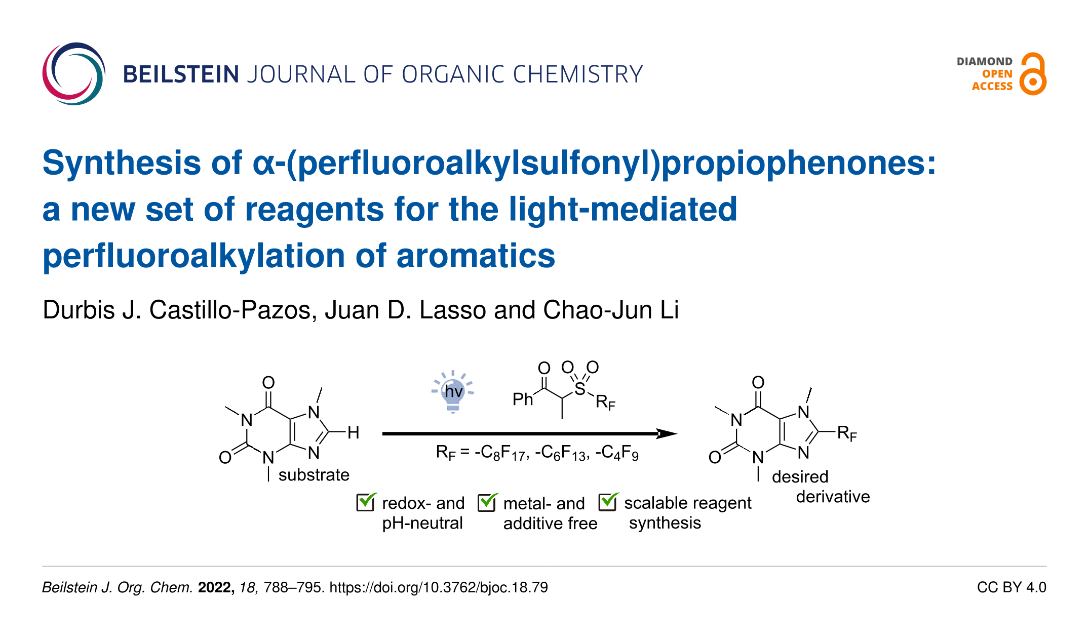 Castillo-Pazos, D. J.; Lasso, J. D.; Li, C.-J. Beilstein J. Org. Chem. 2022, 18, 788–795. doi:10.3762/bjoc.18.79