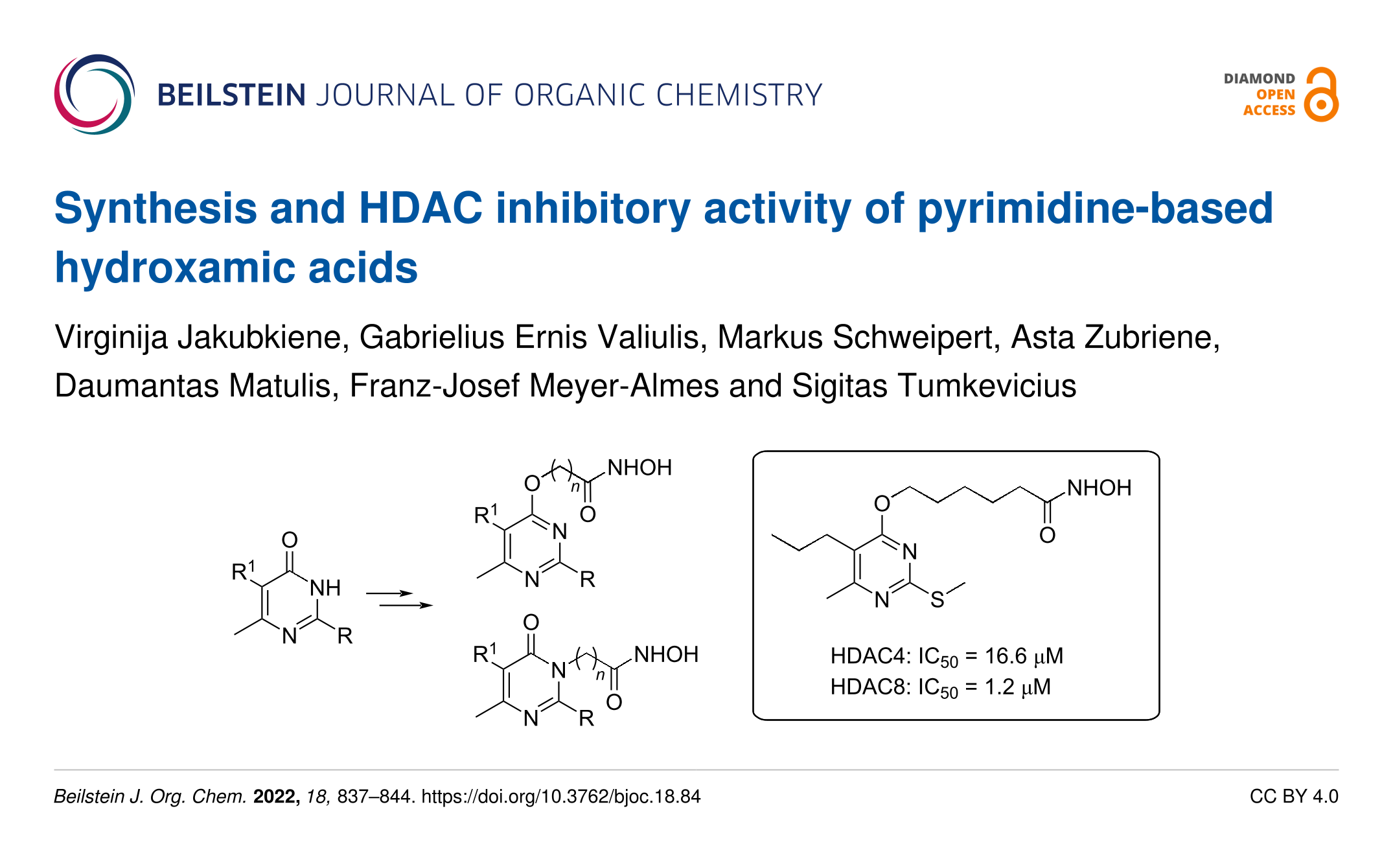 Jakubkiene, V.; Valiulis, G. E.; Schweipert, M.; Zubriene, A.; Matulis, D.; Meyer-Almes, F.-J.; Tumkevicius, S. Beilstein J. Org. Chem. 2022, 18, 837–844. doi:10.3762/bjoc.18.84