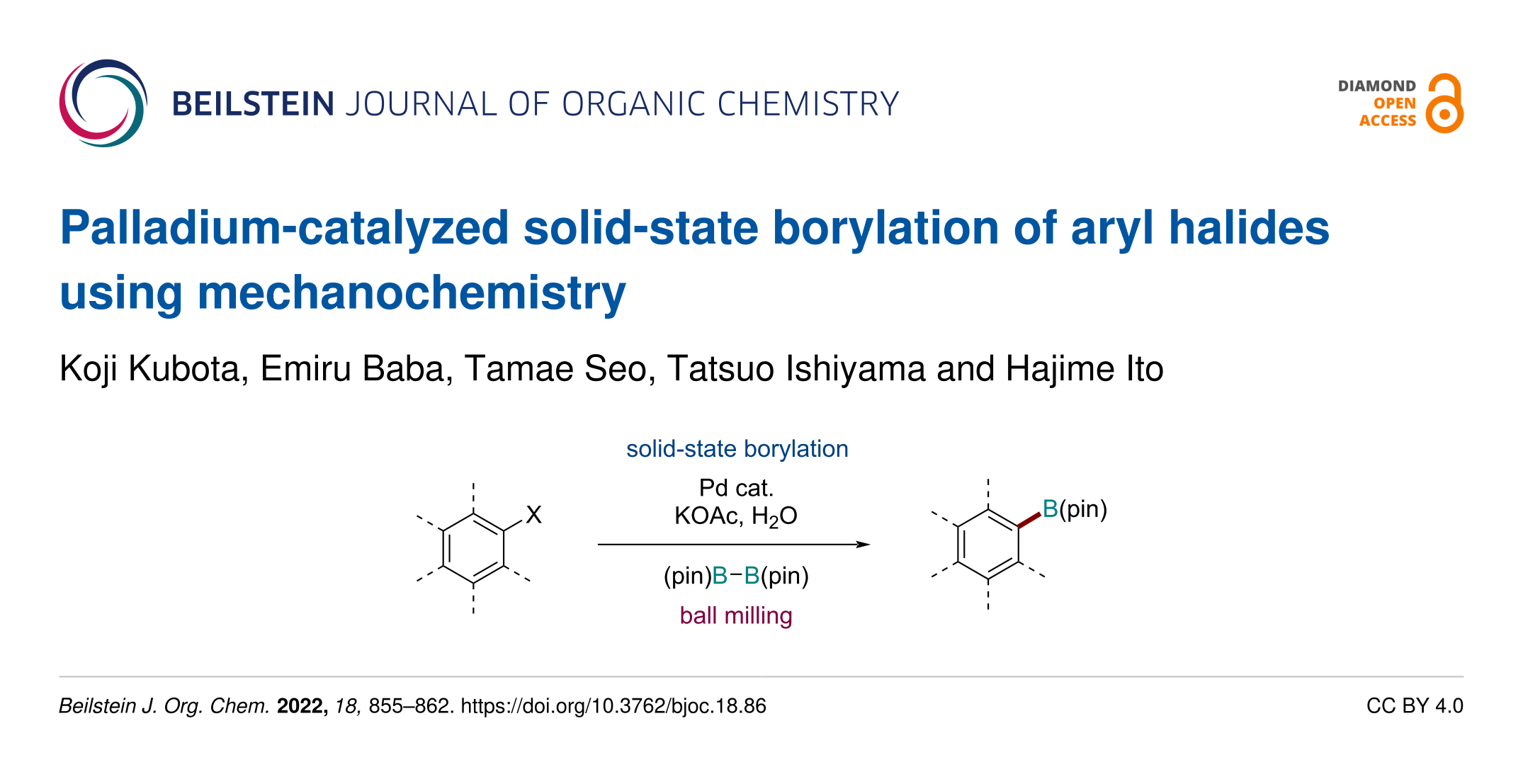 Kubota, K.; Baba, E.; Seo, T.; Ishiyama, T.; Ito, H. Beilstein J. Org. Chem. 2022, 18, 855–862. doi:10.3762/bjoc.18.86