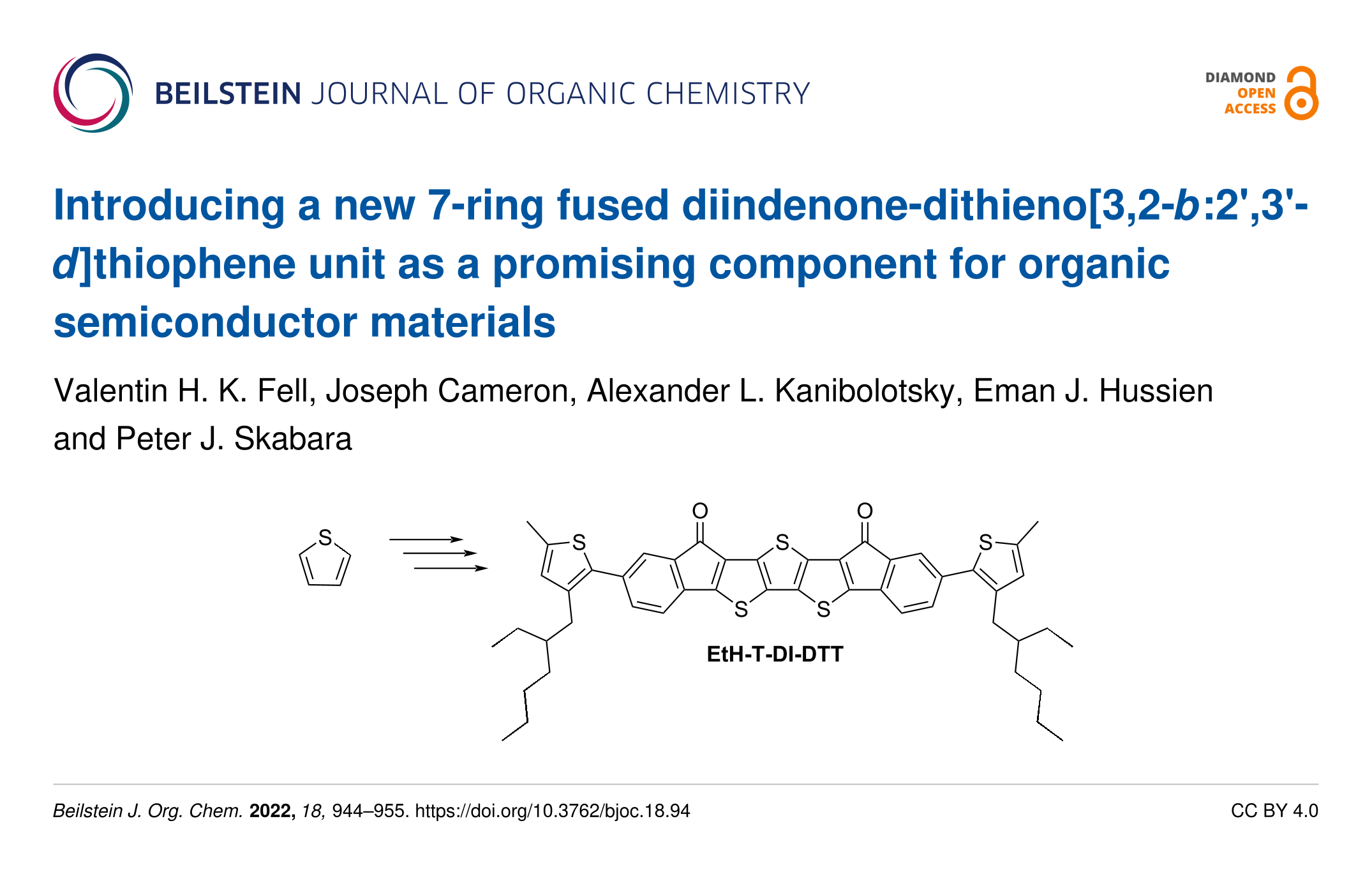 Fell, V. H. K.; Cameron, J.; Kanibolotsky, A. L.; Hussien, E. J.; Skabara, P. J. Beilstein J. Org. Chem. 2022, 18, 944–955. doi:10.3762/bjoc.18.94