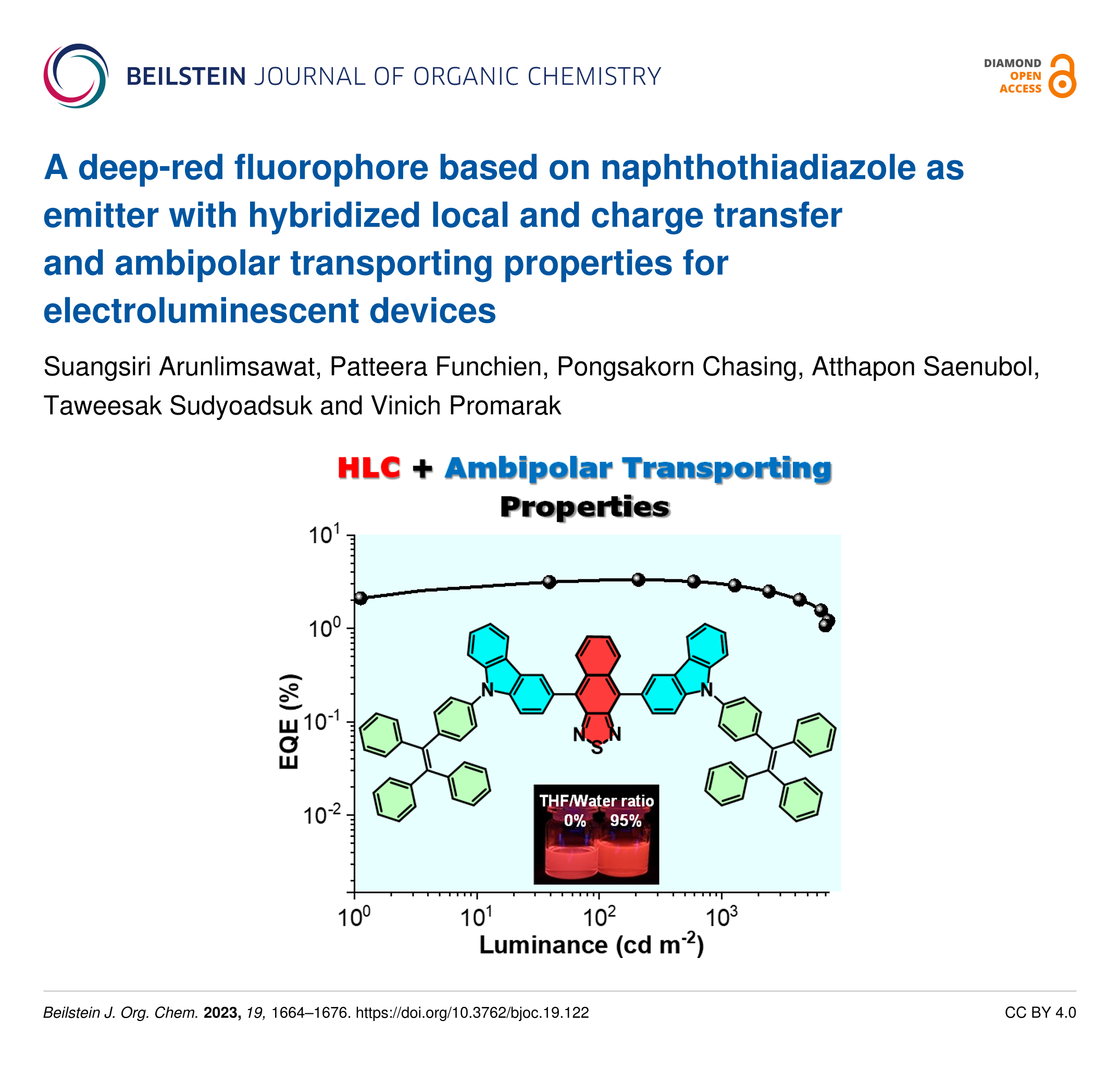 Arunlimsawat, S.; Funchien, P.; Chasing, P.; Saenubol, A.; Sudyoadsuk, T.; Promarak, V. Beilstein J. Org. Chem. 2023, 19, 1664–1676. doi:10.3762/bjoc.19.122