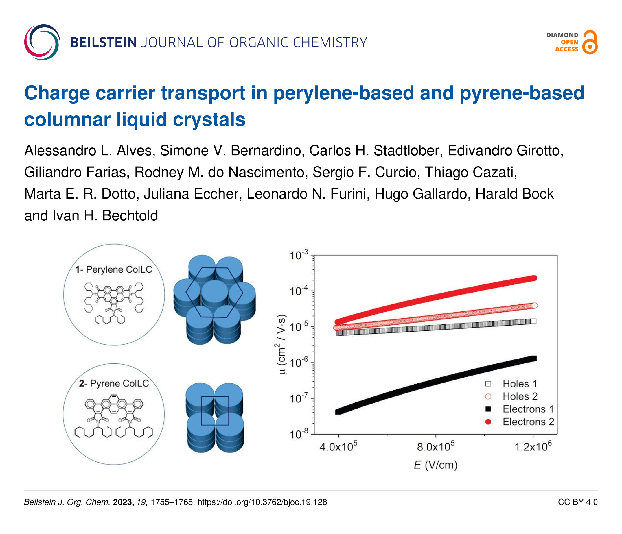Alves, A. L.; Bernardino, S. V.; Stadtlober, C. H.; Girotto, E.; Farias, G.; do Nascimento, R. M.; Curcio, S. F.; Cazati, T.; Dotto, M. E. R.; Eccher, J.; Furini, L. N.; Gallardo, H.; Bock, H.; Bechtold, I. H. Beilstein J. Org. Chem. 2023, 19, 1755–1765. doi:10.3762/bjoc.19.128